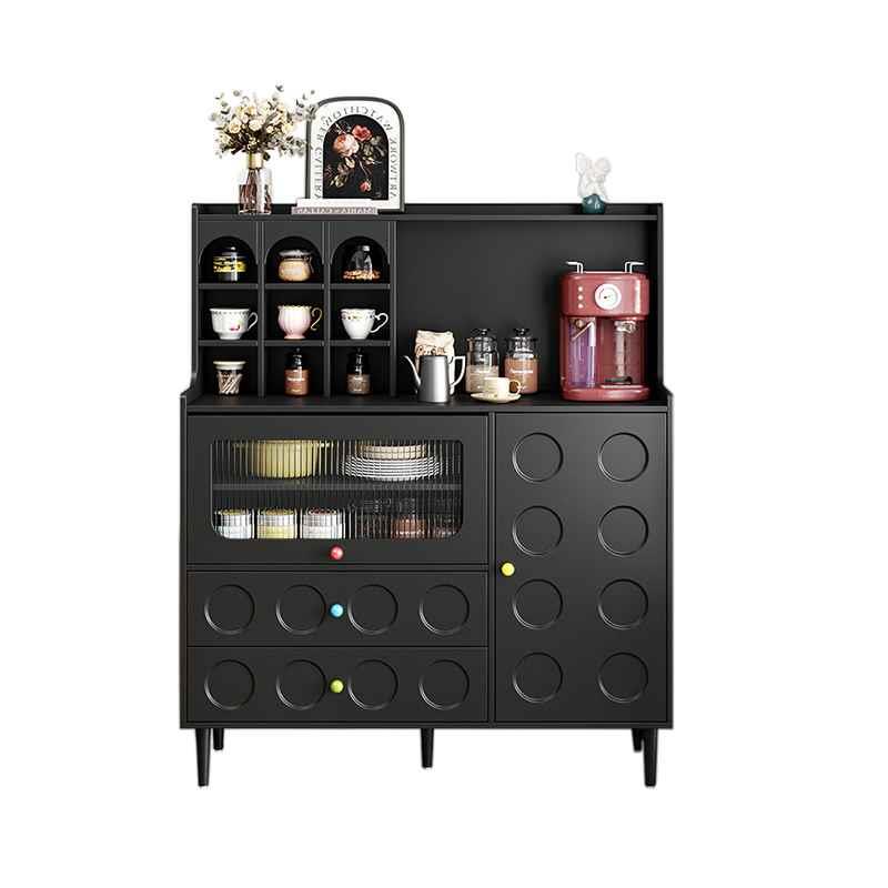 法式复古黑色餐边柜简约小户型咖啡柜杯子柜客餐厅储物柜沙发新品