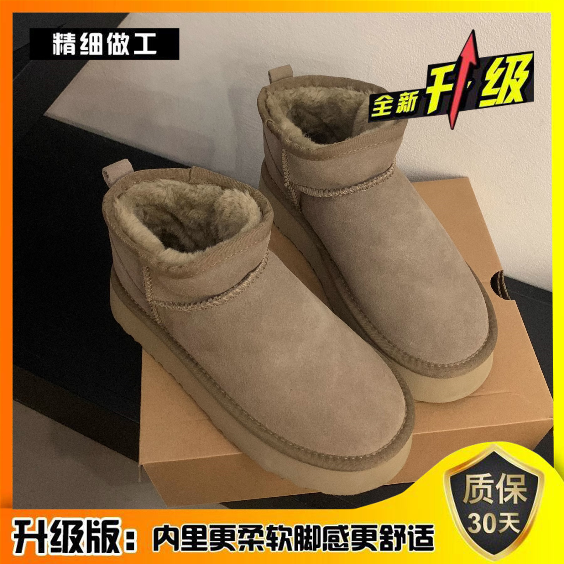 松糕厚底雪地靴女2024年冬季新款防水短筒增高棉鞋保暖加绒面包鞋