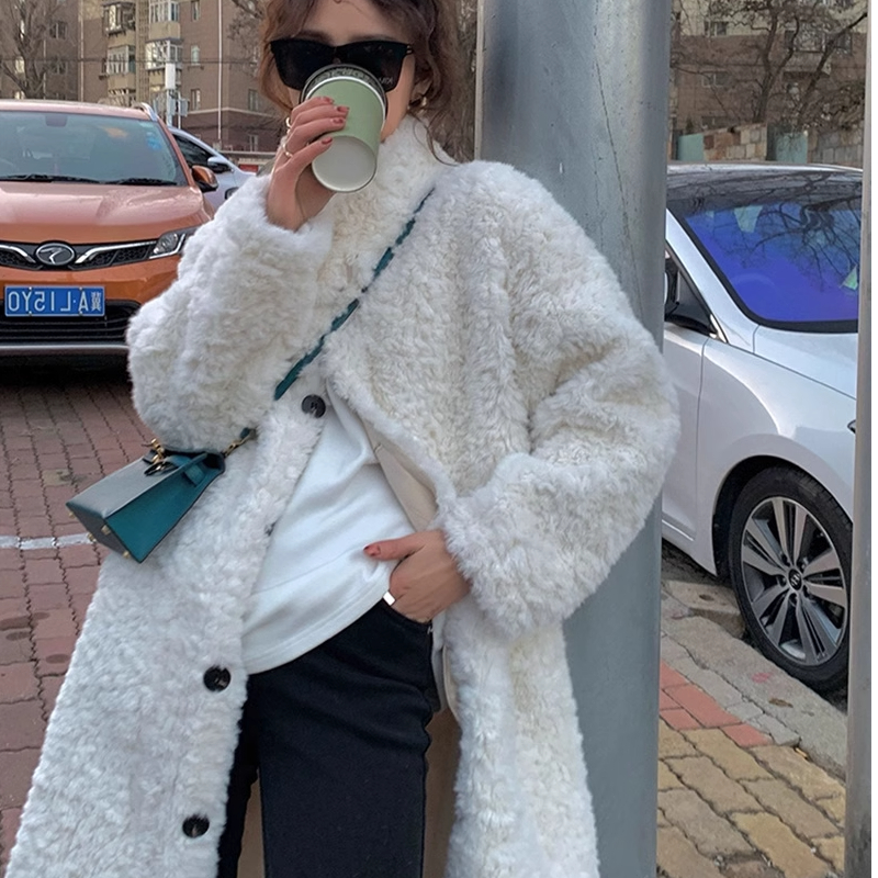 2025年秋冬新款獭兔毛仿皮草外套女宽松加厚羊羔毛毛毛大衣中长款