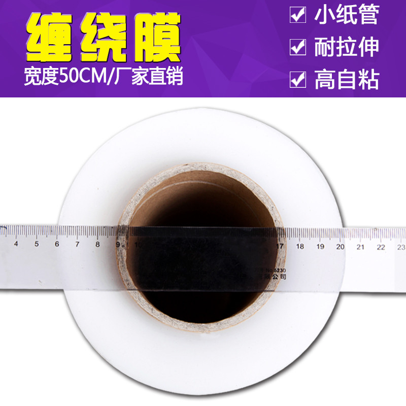 PE缠绕膜50cm宽拉伸膜小卷工业包装膜大卷打包膜保鲜膜塑料薄围膜