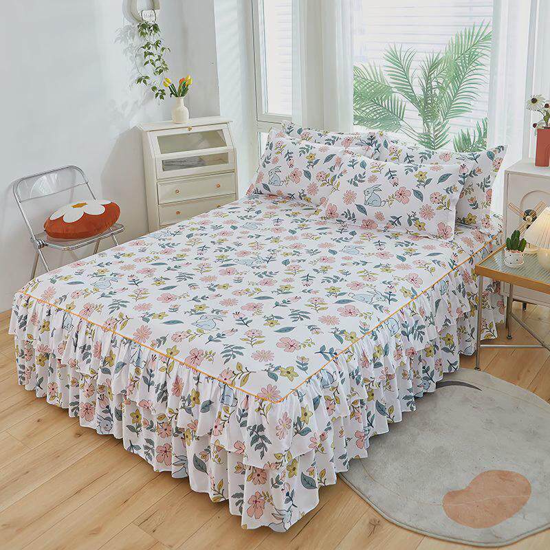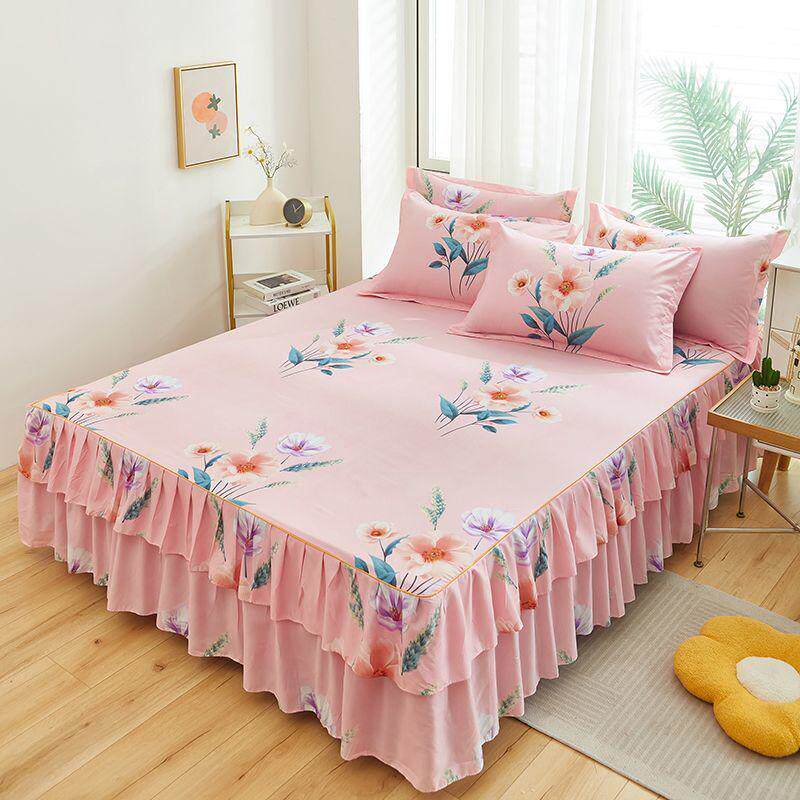 w5r公主风2024新款床罩床裙式带裙边床套单件床单花边床笠防滑三