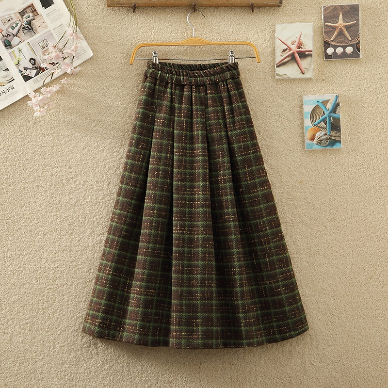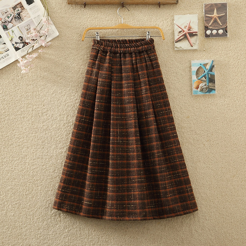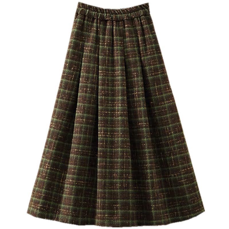 毛呢口袋半身裙女秋冬2023新款高腰时尚格子a字小个子裙子百褶裙
