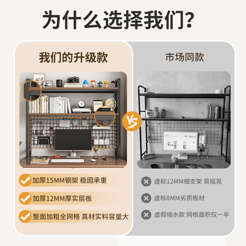 带网格书架书桌收纳置物架桌面多层铁艺架子学生电脑桌桌上洞