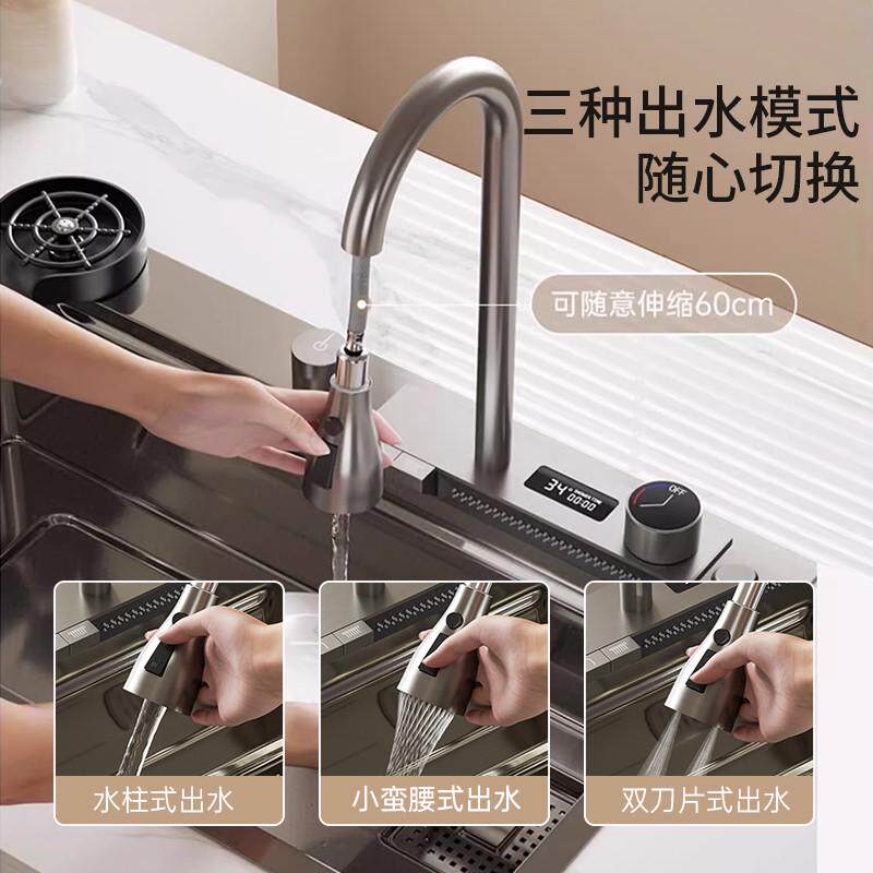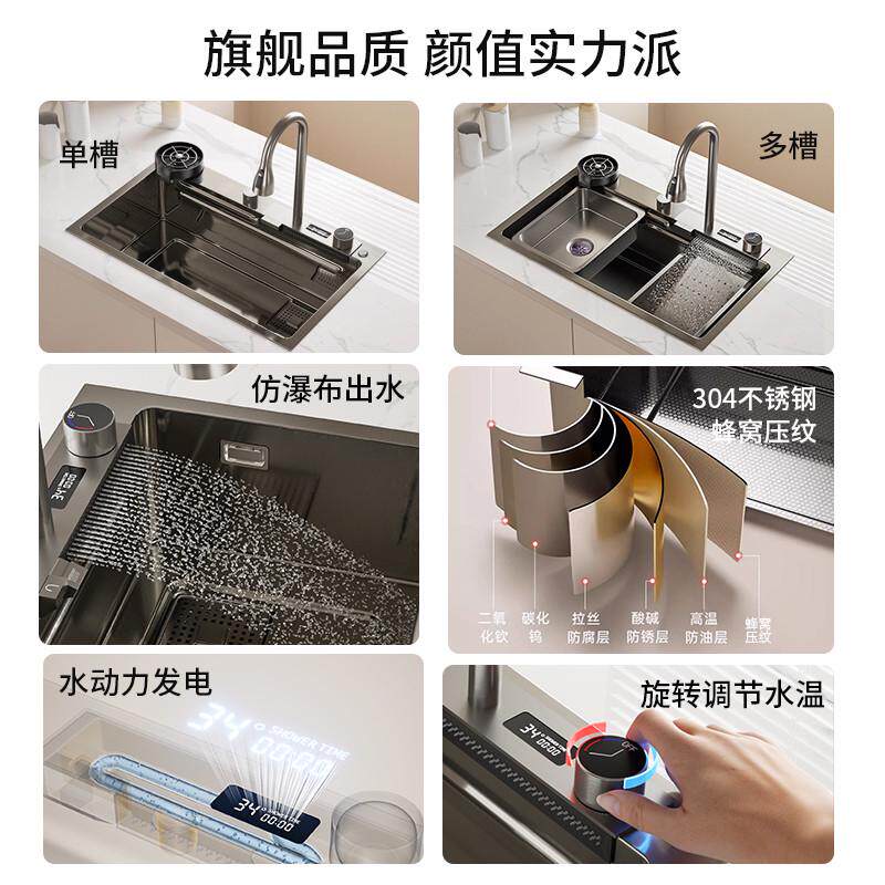 爆款wocam沃咖q9厨房大蜂窝单槽瀑布水槽304不锈钢洗碗池洗菜盆龙
