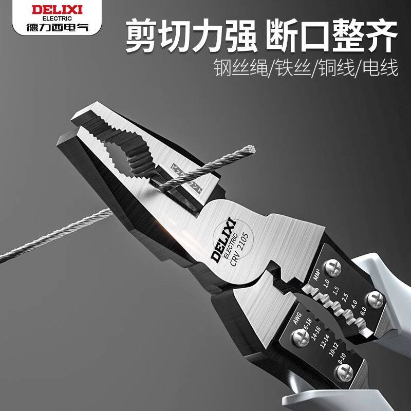 德力西老虎钳多功能万用斜口钳钢丝钳五金工具大全钳子电工尖