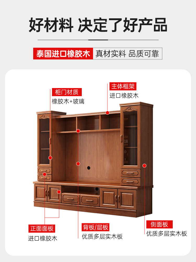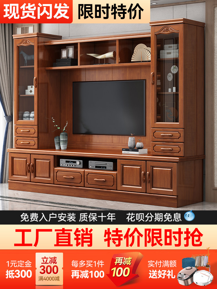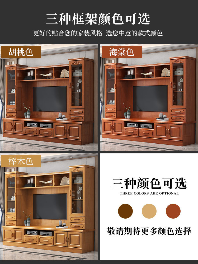 实木电视柜一体组合客厅背景墙柜现代简约大户型新中式地柜背景柜