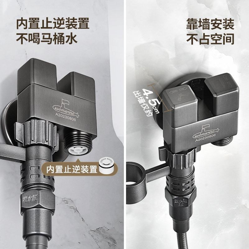 潜水艇枪灰冲洗喷枪马桶伴侣卫生间一进二出角阀水龙头家用妇洗器