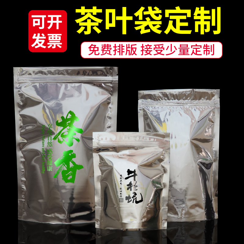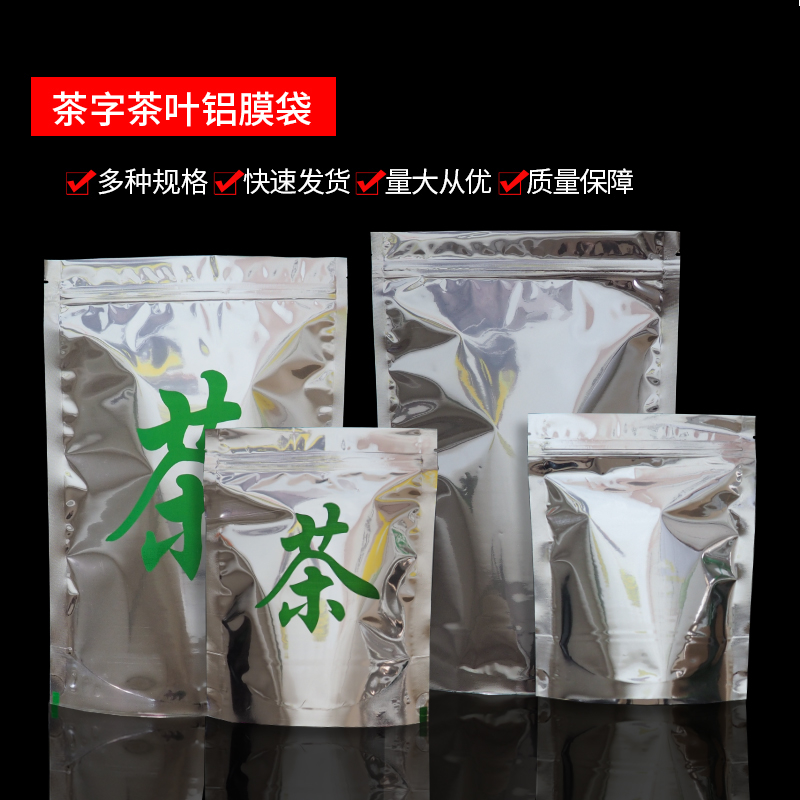 茶字通用茶叶包装袋铝膜袋绿茶红茶密封袋食级铝箔茶叶袋自封袋