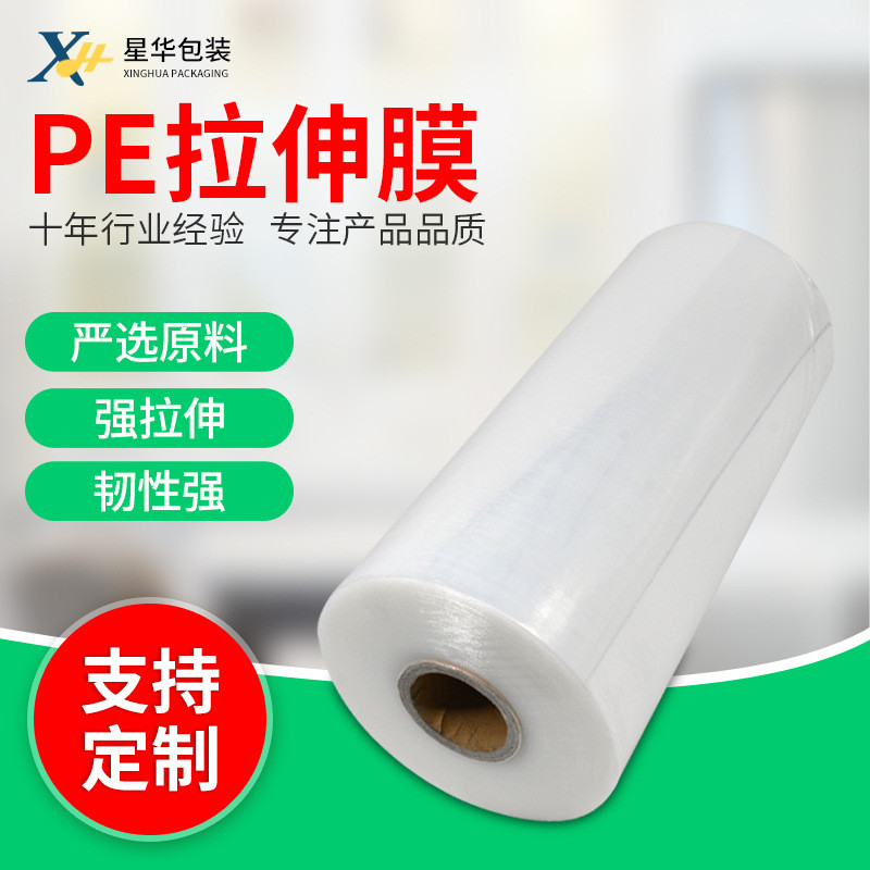 大卷自粘PE拉伸膜宽50cm工业保鲜打包透明围膜物流包装塑料缠