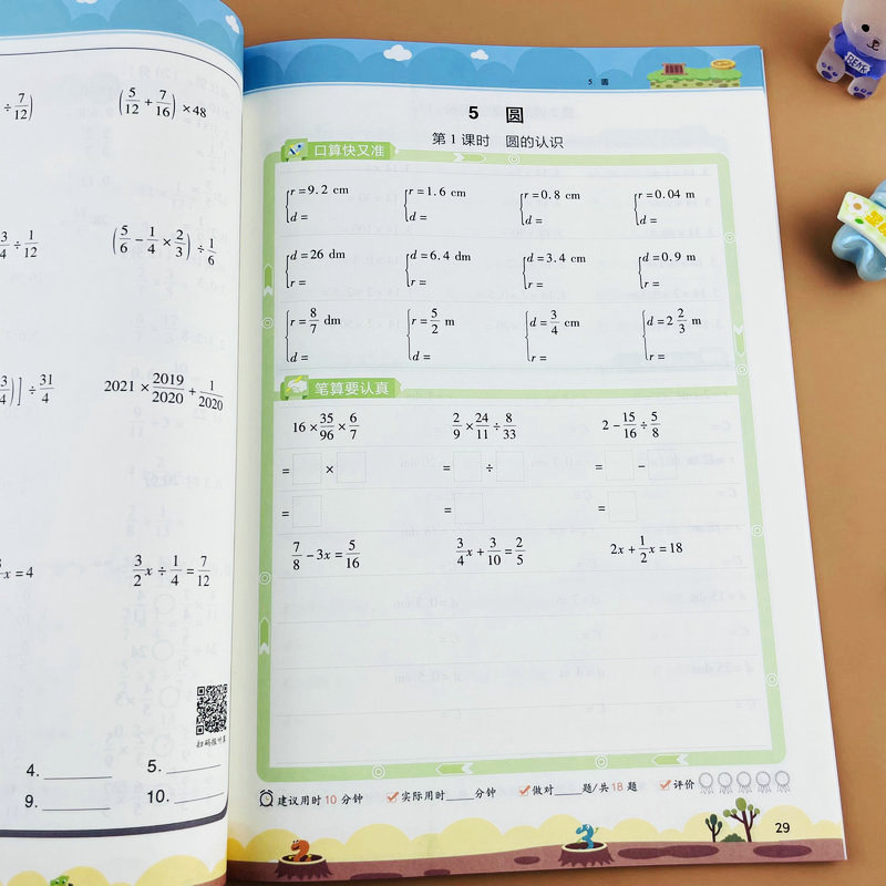 六年级上册数学计算题强化训练口算笔算竖式脱式计算天天练6年级上学期人教版课本同步练习册分数乘法分数除法比的应用圆百分数