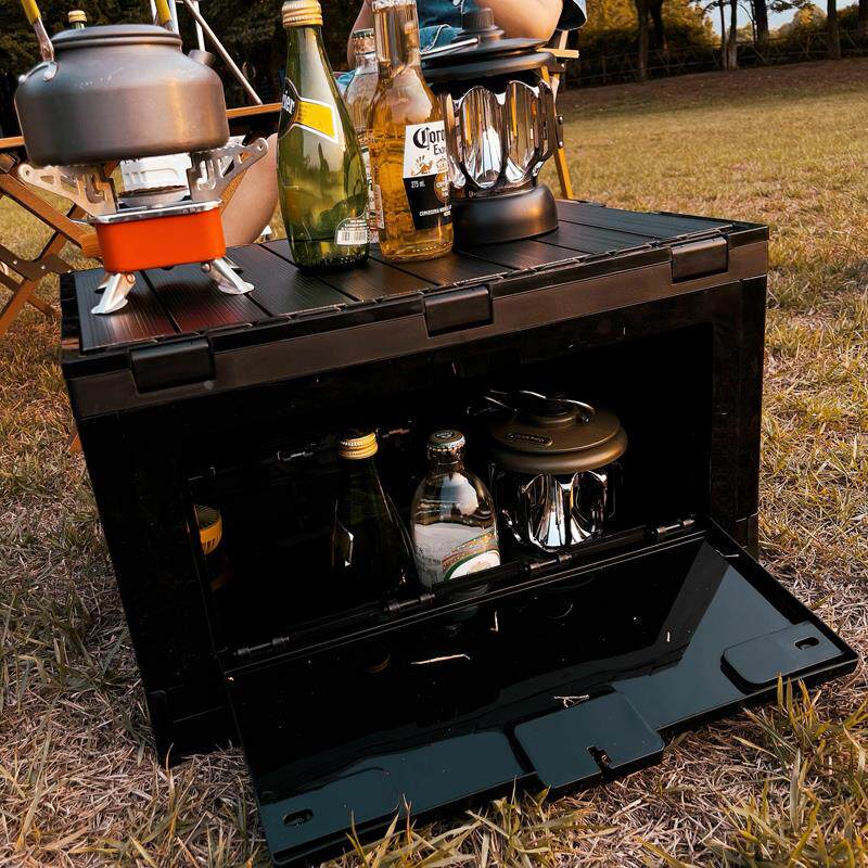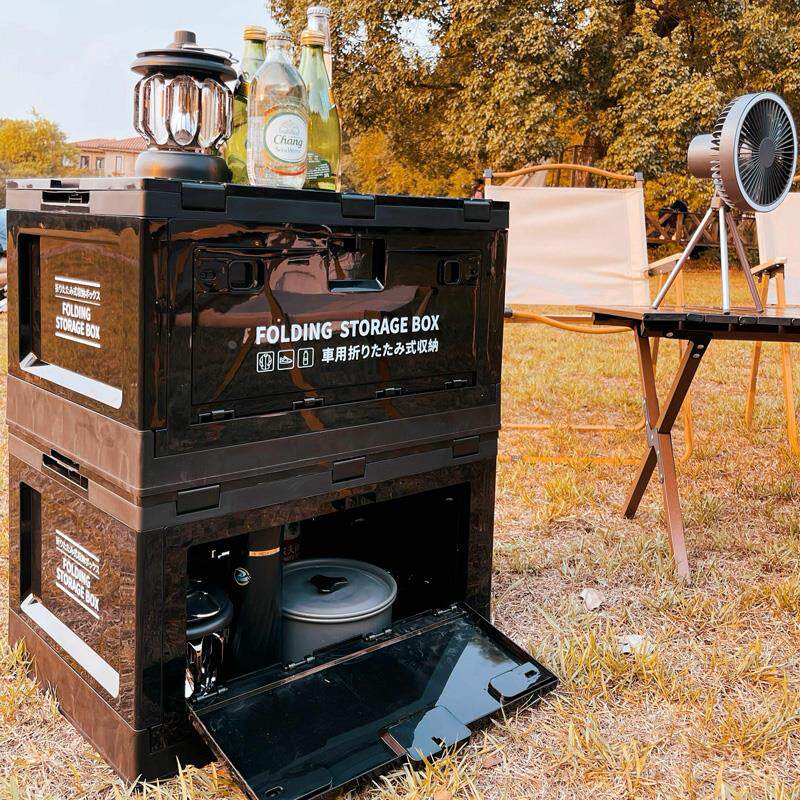 户外黑化风格露营折叠收纳箱大容量侧开门轻量化车用整理置物箱