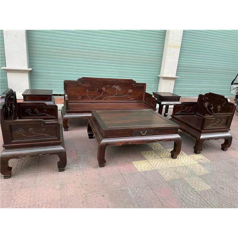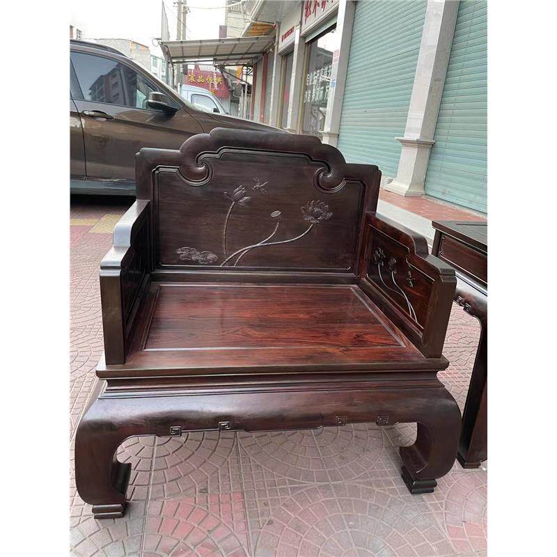 沙发新款大红款黄檀新酸枝交趾中式老挝古典荷花明韵素面客厅沙发