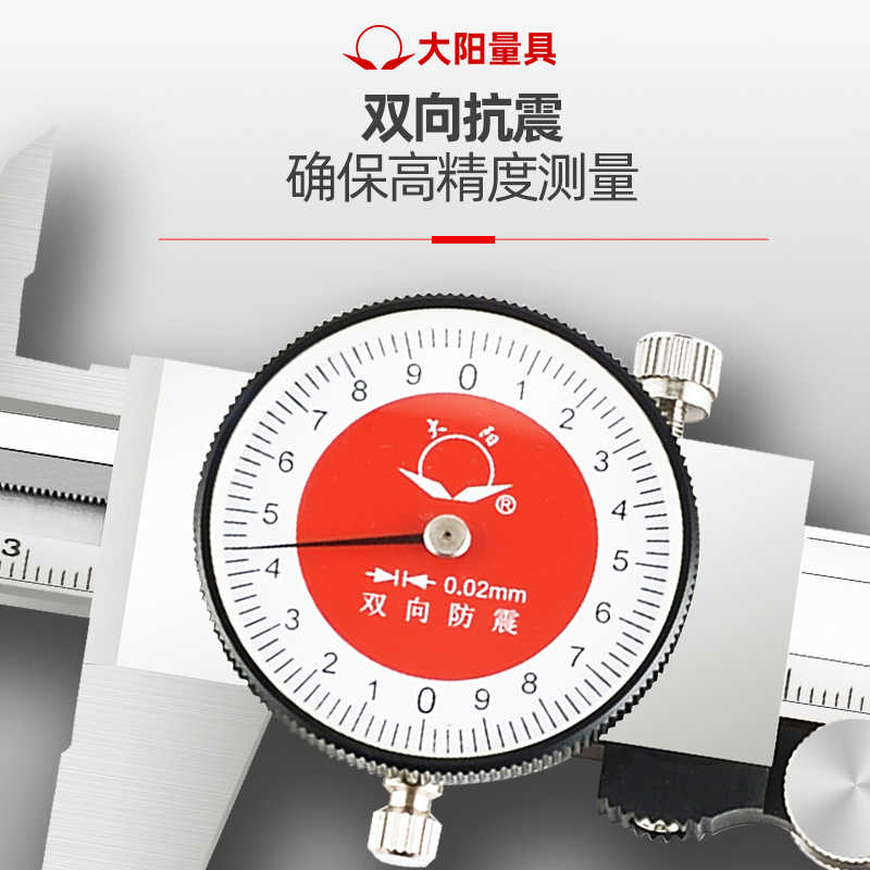大阳带表盘游卡尺0-150 200 300mm不锈钢高精度双向防震保修