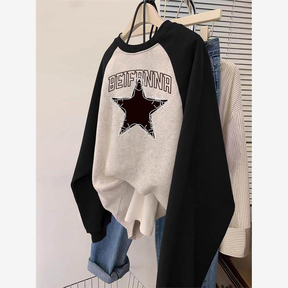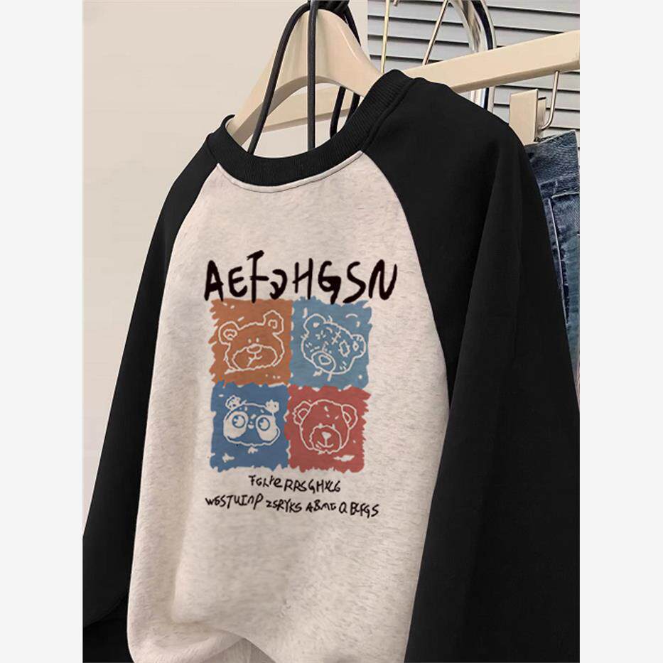 山东即墨美式复古圆领卫衣秋冬上衣女2025新款爆款加绒大码无帽春