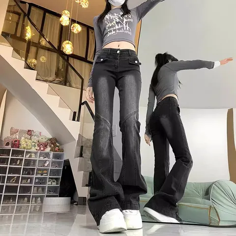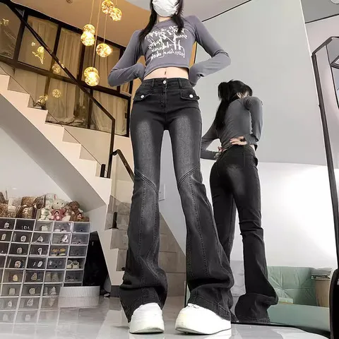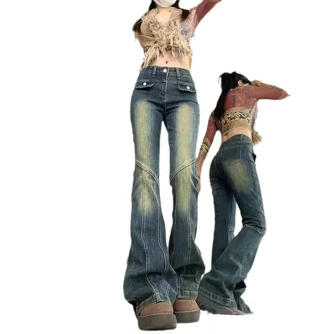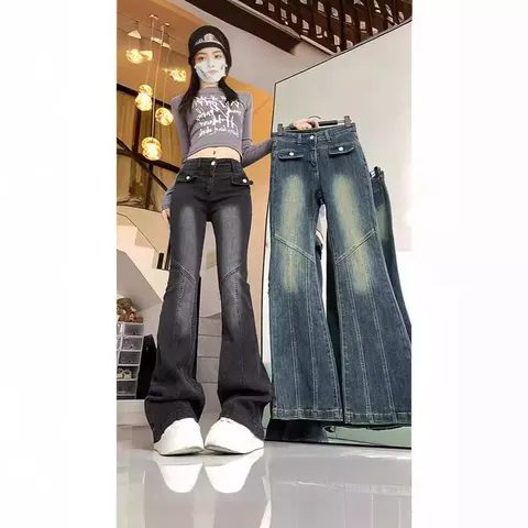首页> 女装> 春秋高腰时尚设计感喇叭裤港风弹力辣妹微喇牛仔裤马蹄修身新款女