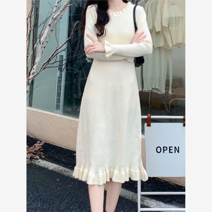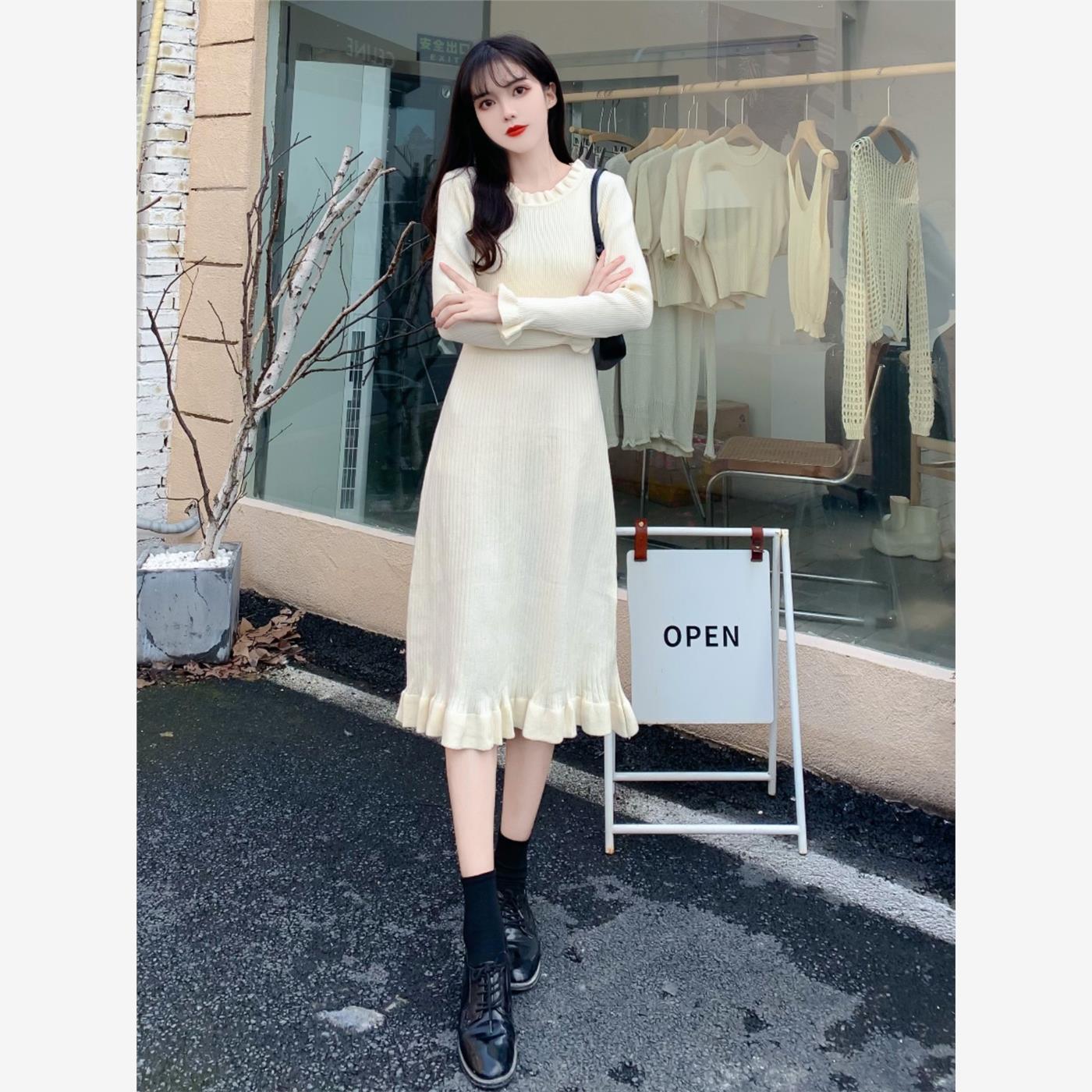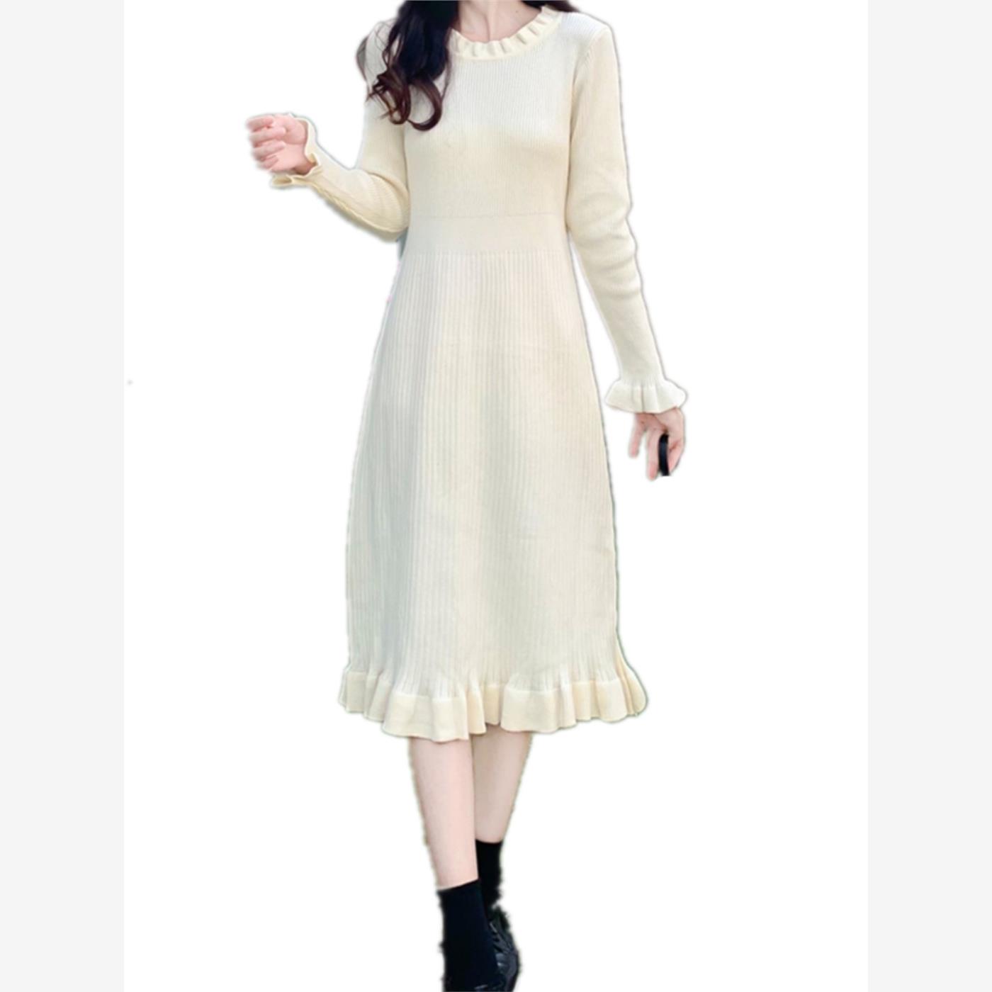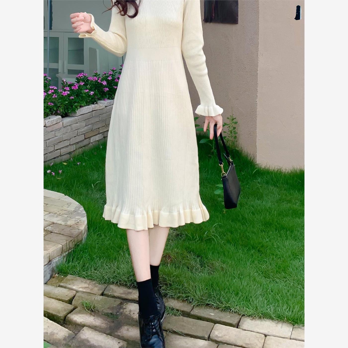 大码打底圆领毛衣裙女2025年秋冬胖mm法式小众过膝显瘦针织连衣裙
