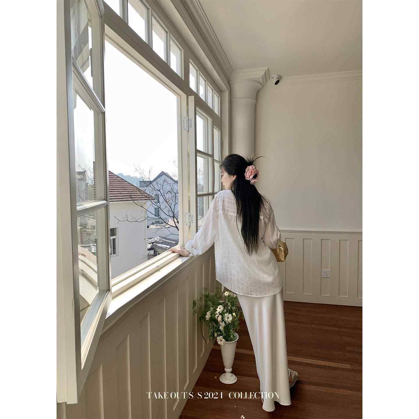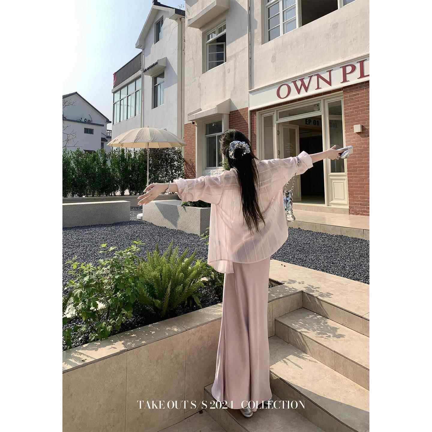 外送到瞭 八音盒/粉色天丝防晒衬衫女上衣夏季薄款外套女宽松显瘦