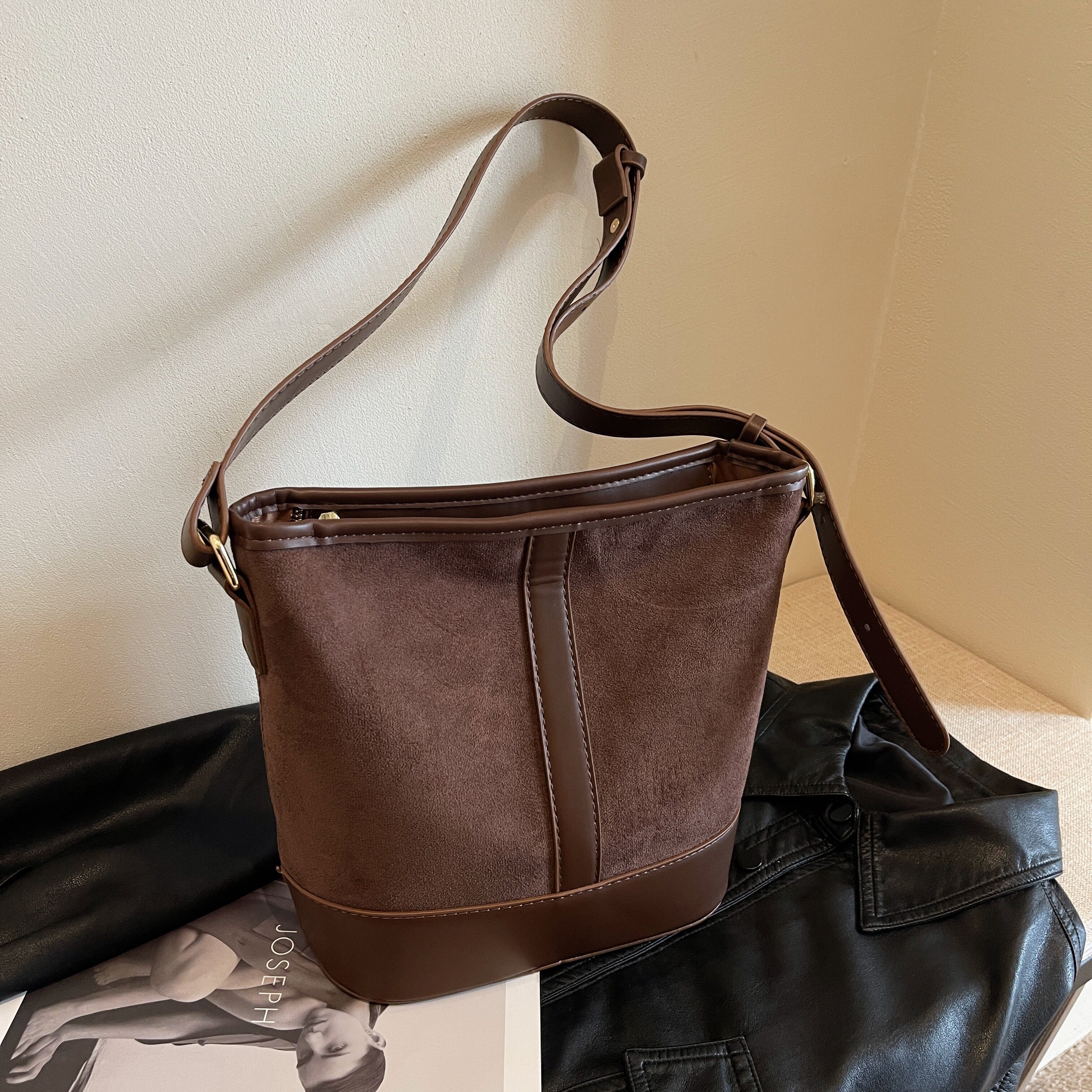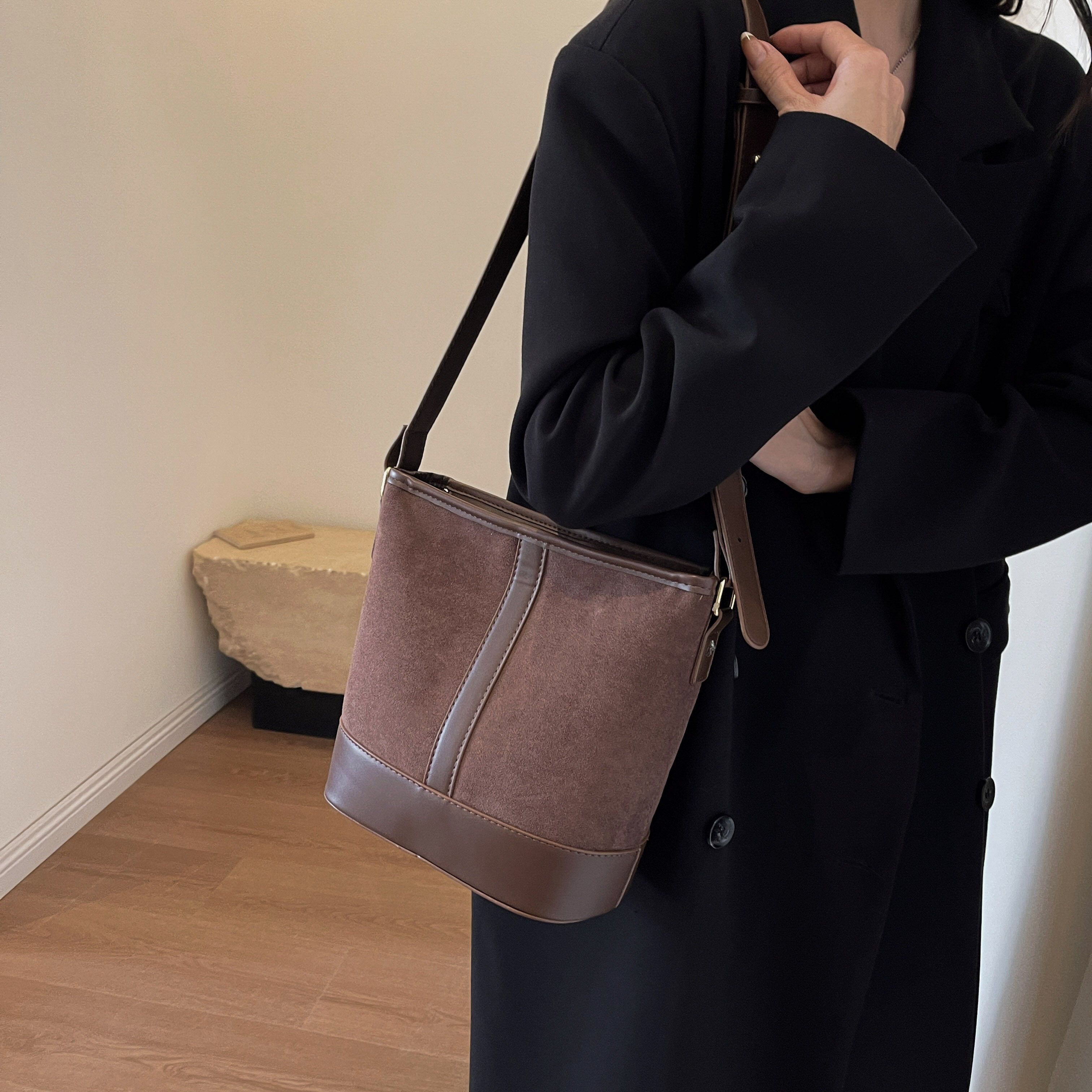 首页> 鞋包> 高级感小众复古简约麂皮绒水桶包女时尚秋冬新款大容量单肩斜挎包
