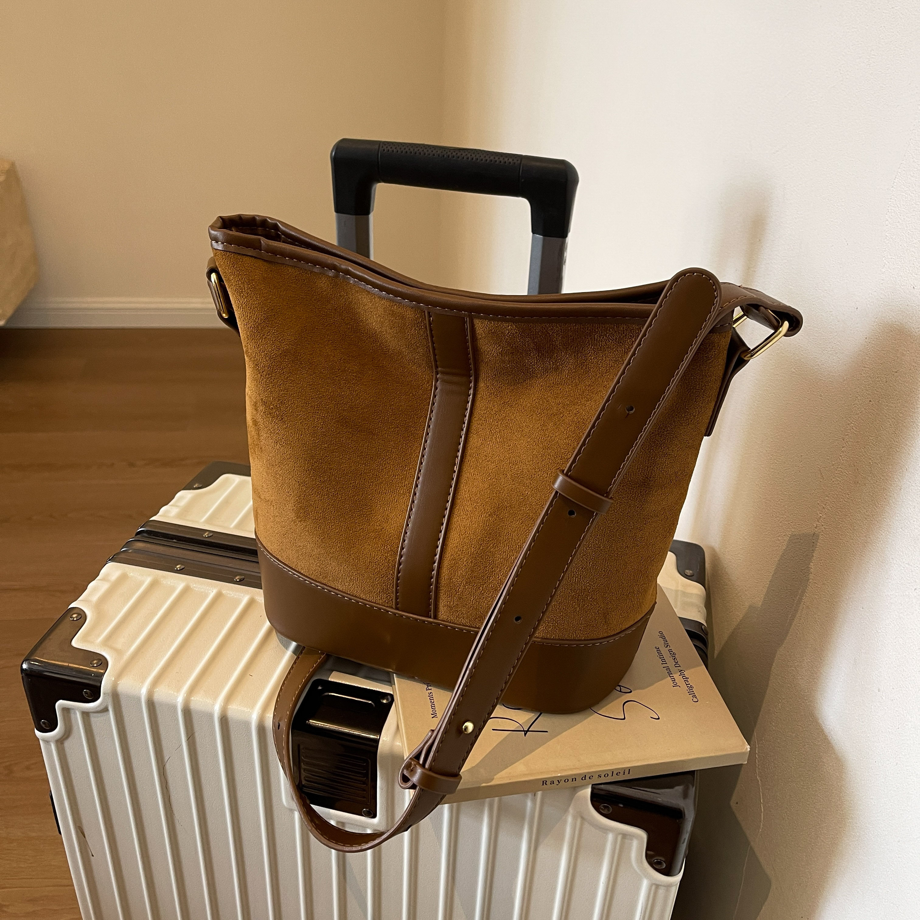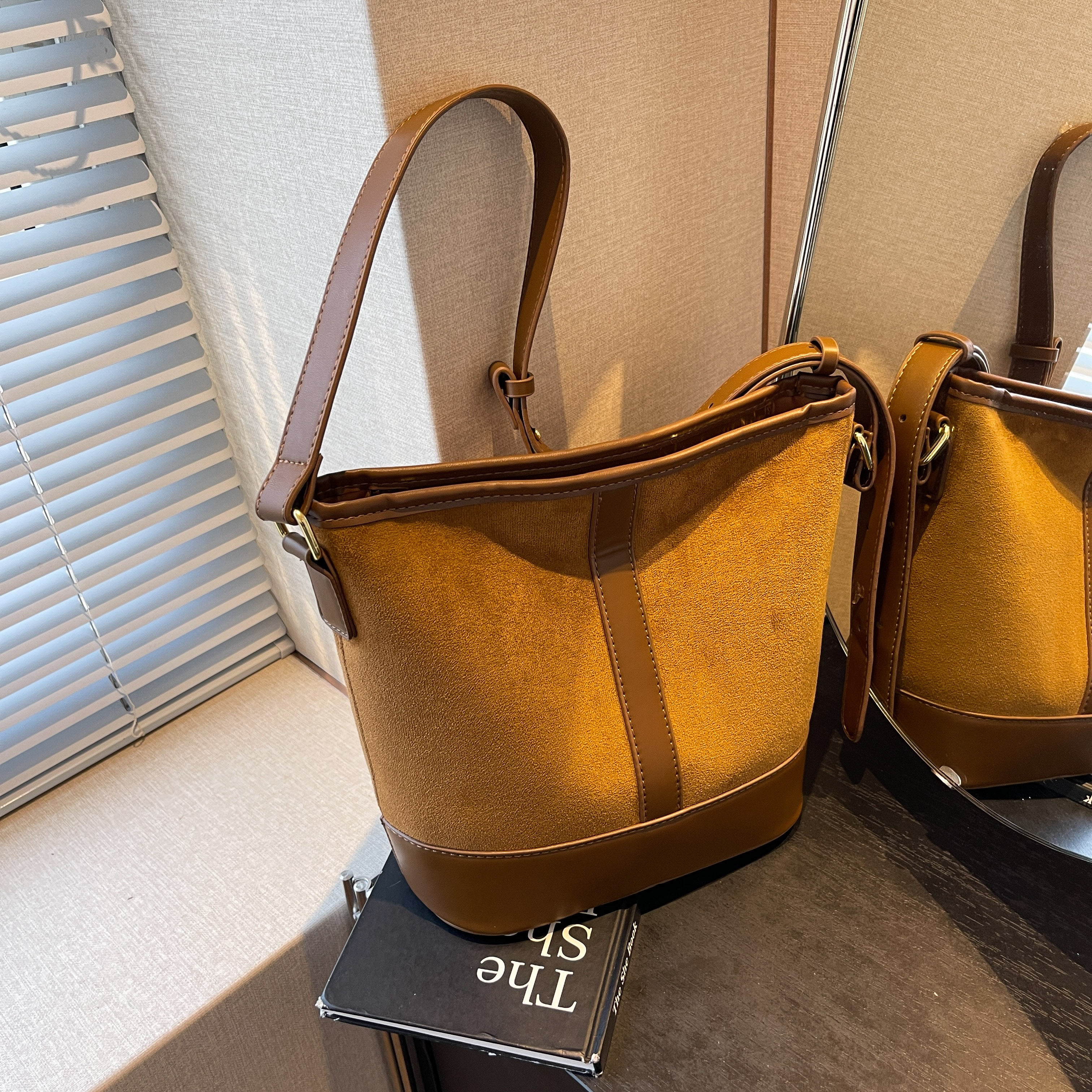 高级感小众复古简约麂皮绒水桶包女时尚秋冬新款大容量单肩斜挎包