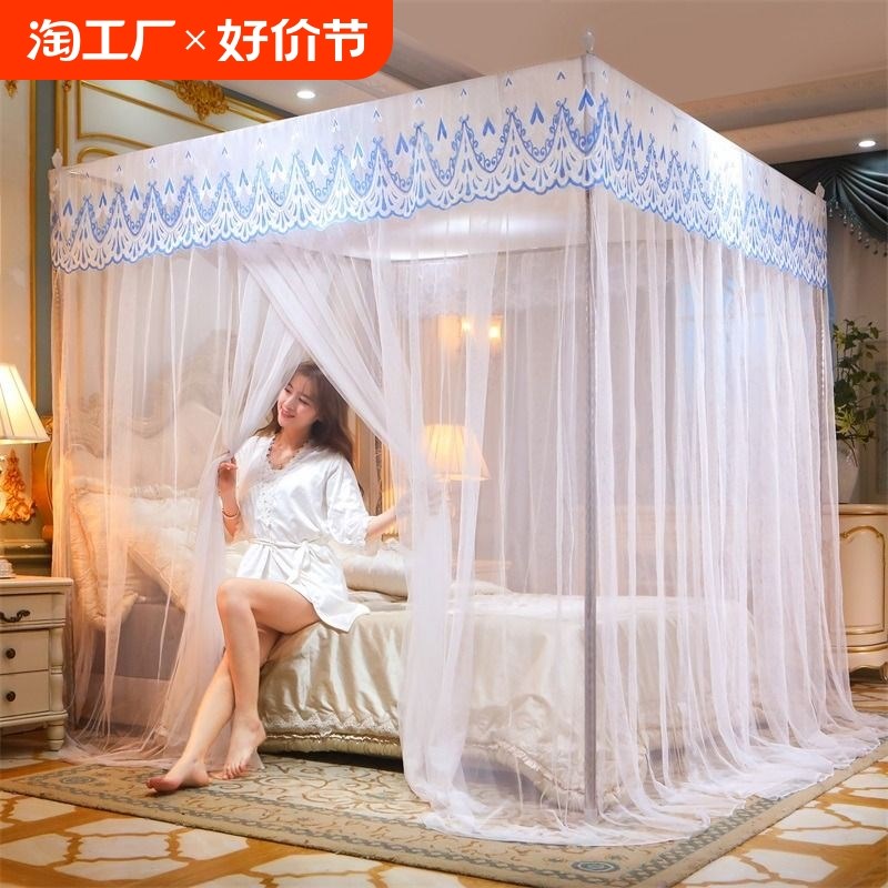 2024新款落地家用蚊帐加密帐纱三开门单人双人1.5m1.8m卧室带支架