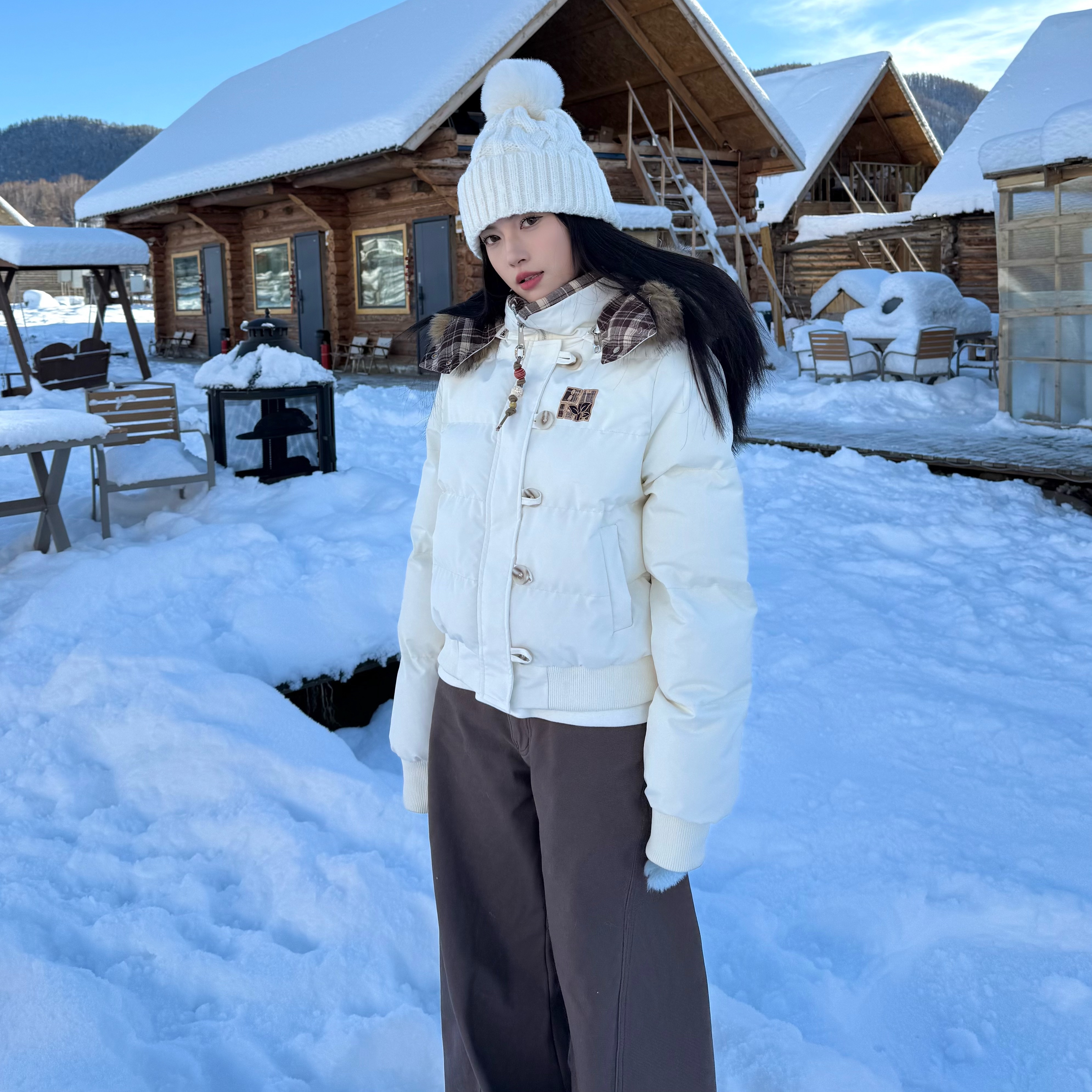 AMER 美式复古冬季短款串珠拉链连帽收腰显瘦菲奥娜棉服