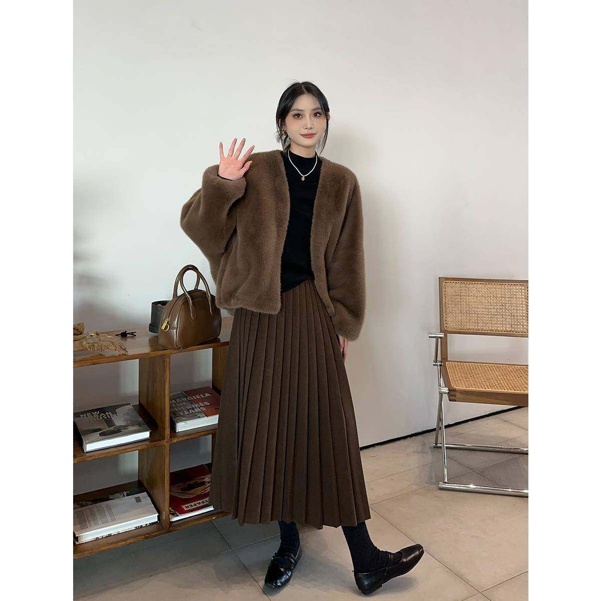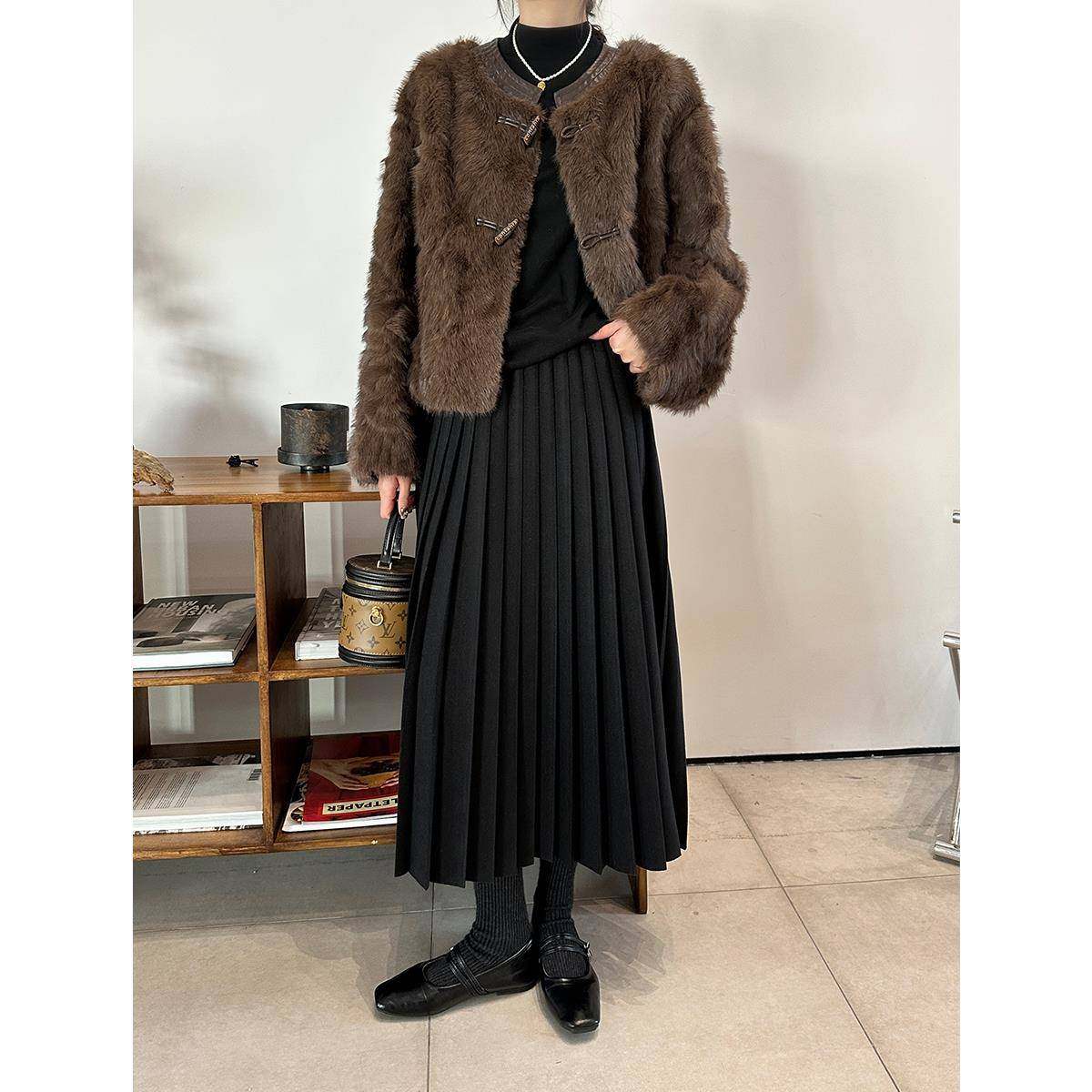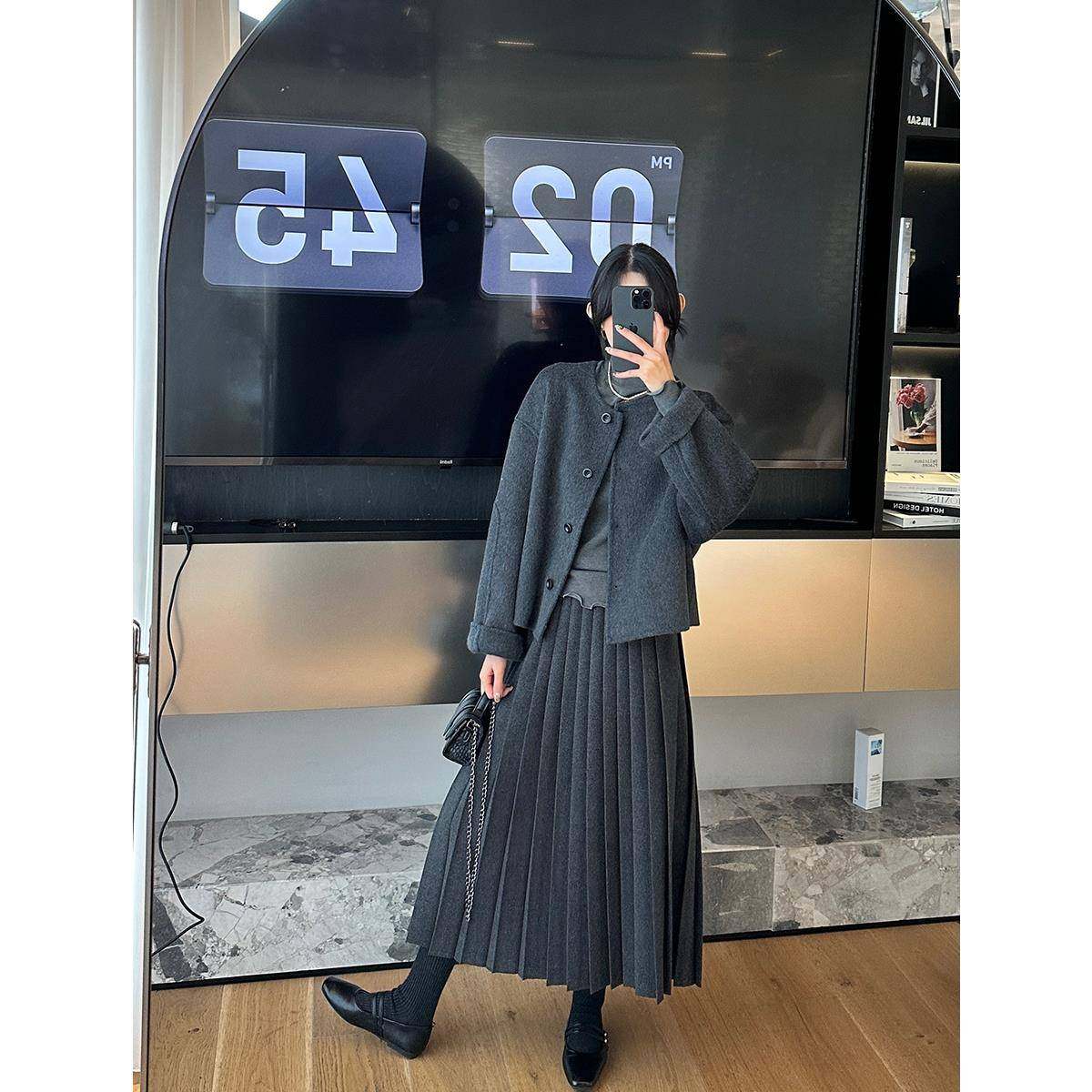 2025春夏新款百褶裙半身裙女小个子灰色裙子百搭a字裙黑色中长裙