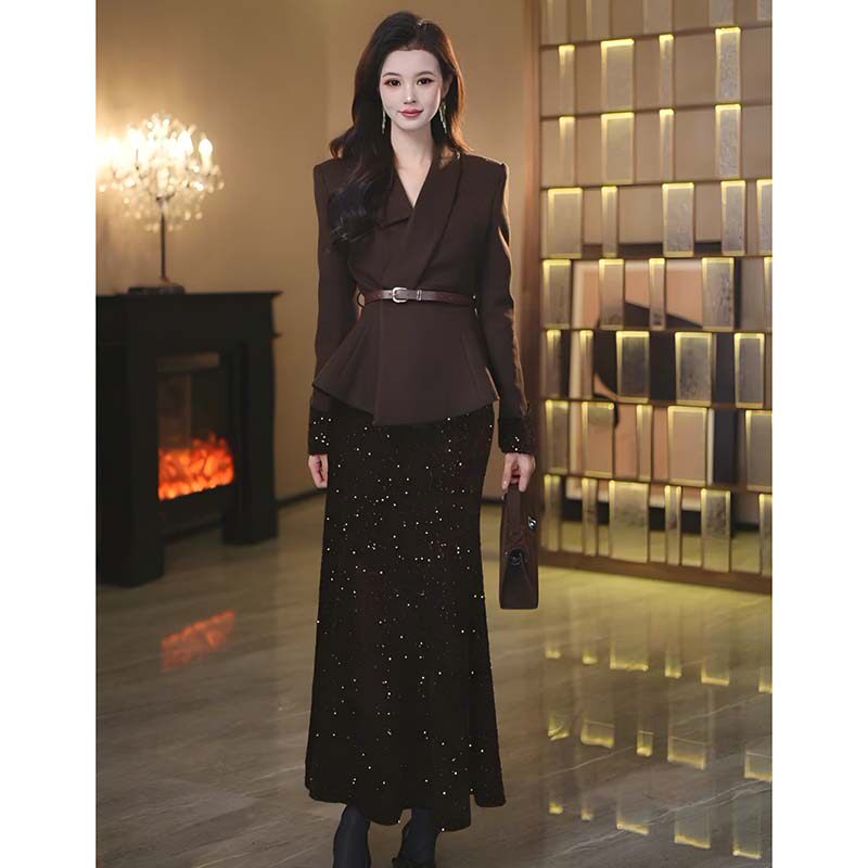 有里布送腰带气质名媛套装2025秋季新款高级感亮片裙两件套DM0066