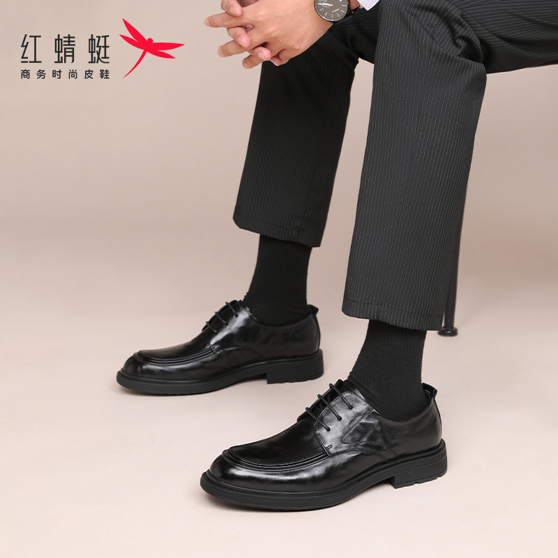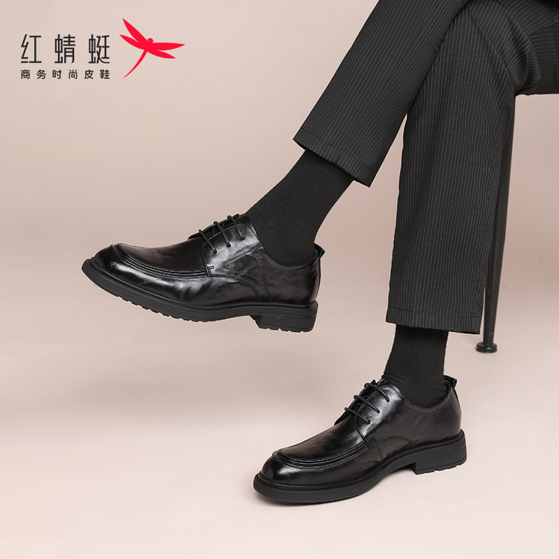 红蜻蜓男鞋新款鞋子男士休闲皮鞋男正装商务英伦风小皮鞋真皮牛皮