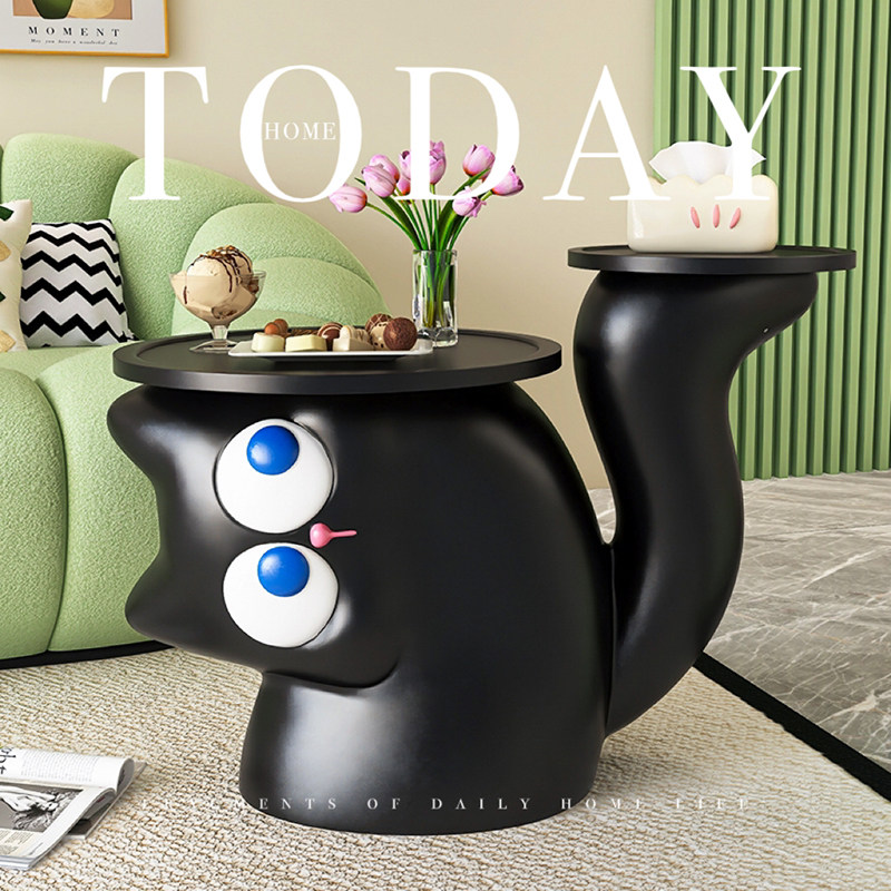 卡通猫咪沙发边几创意客厅可爱小茶几家用设计感置物边柜2024新款
