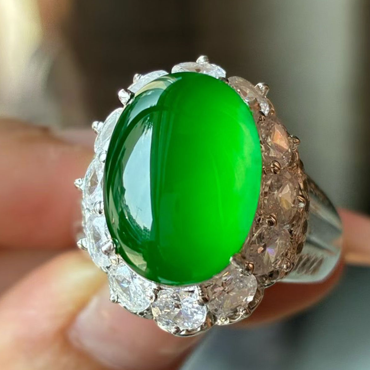瑜瑾缅甸玉天然A货翡翠冰种冰阳绿帝王绿金镶戒面饰品