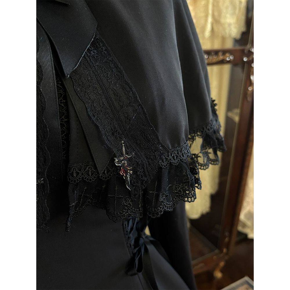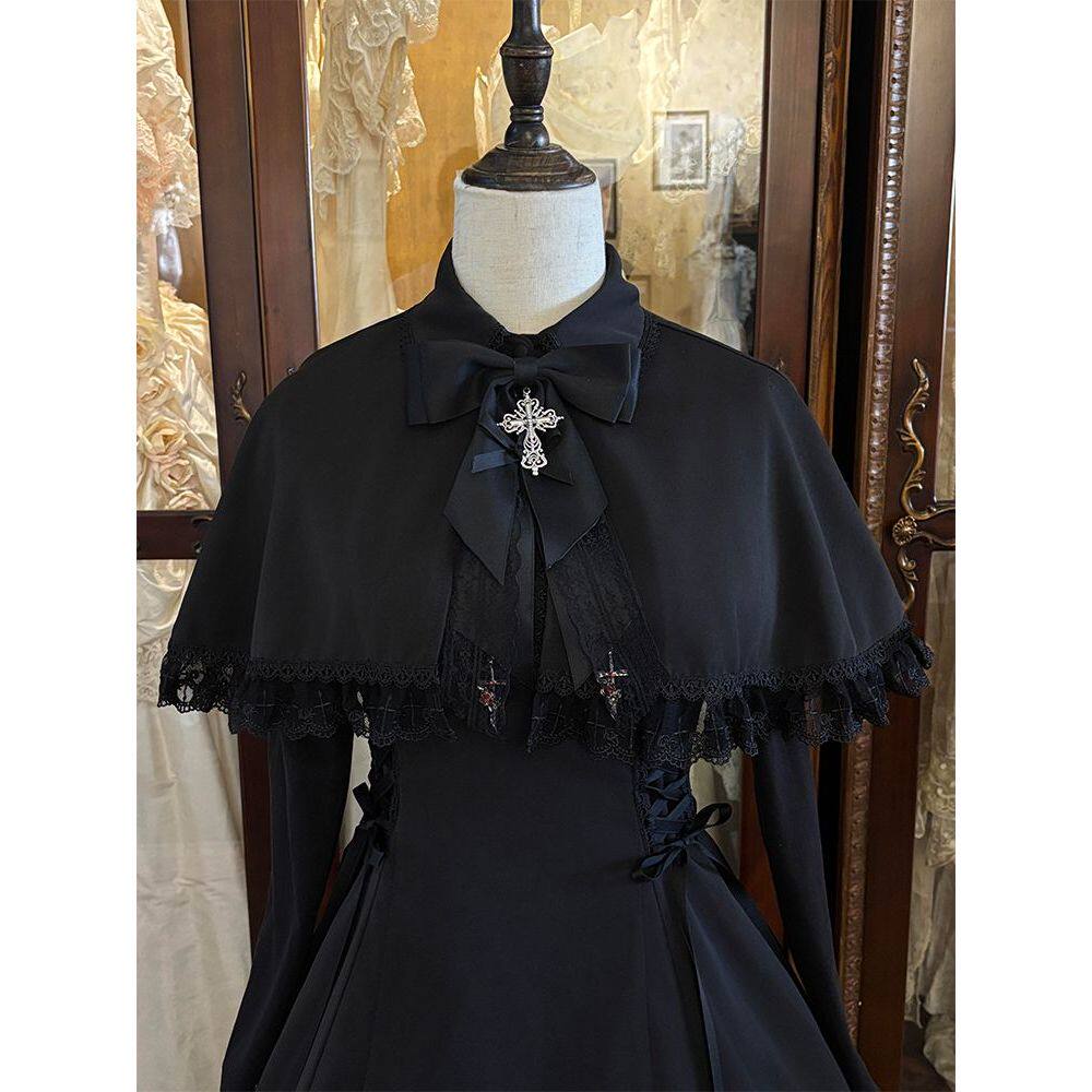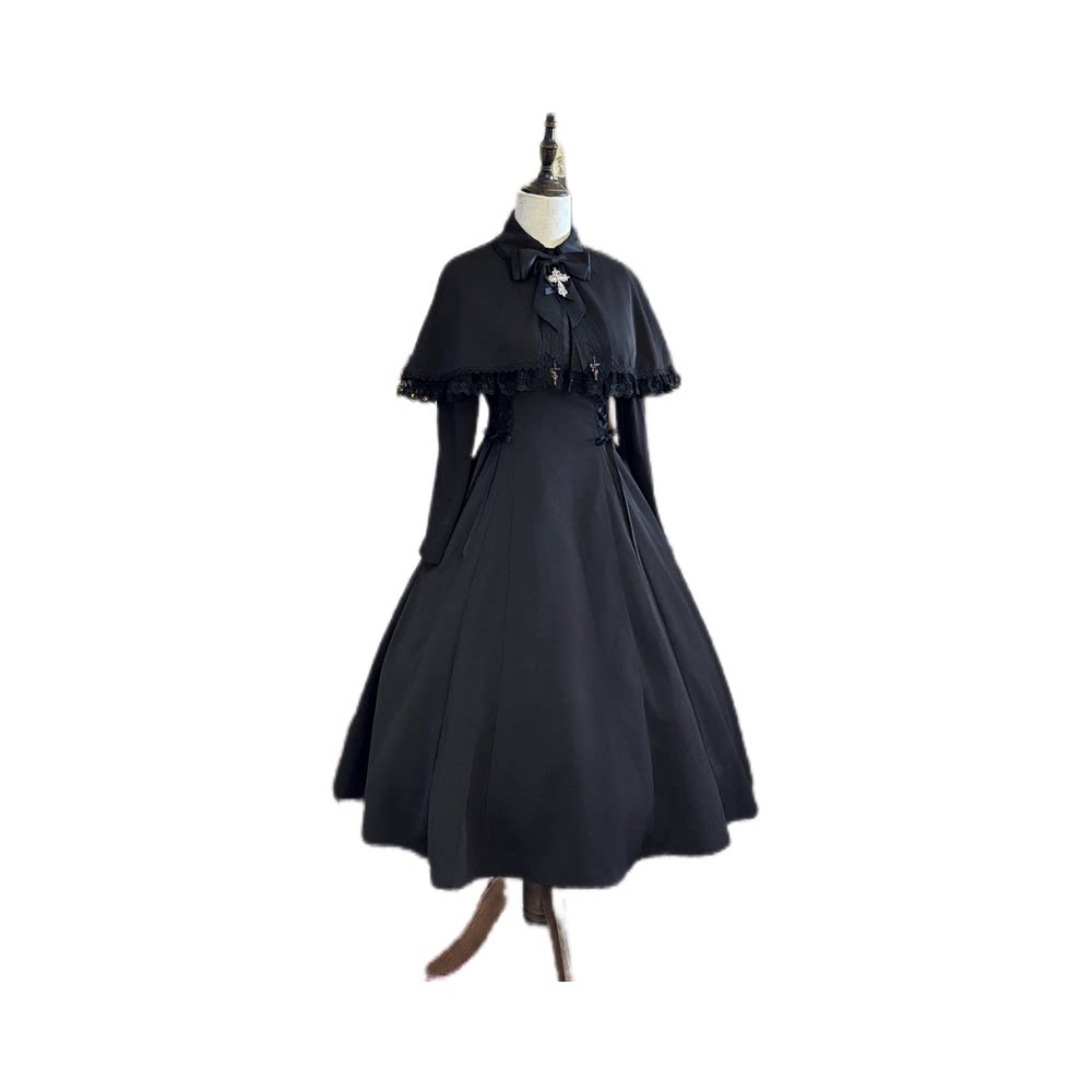 梦魇魔女 日系哥特暗黑气质氛围设计lolita长袖连衣裙披肩套装女