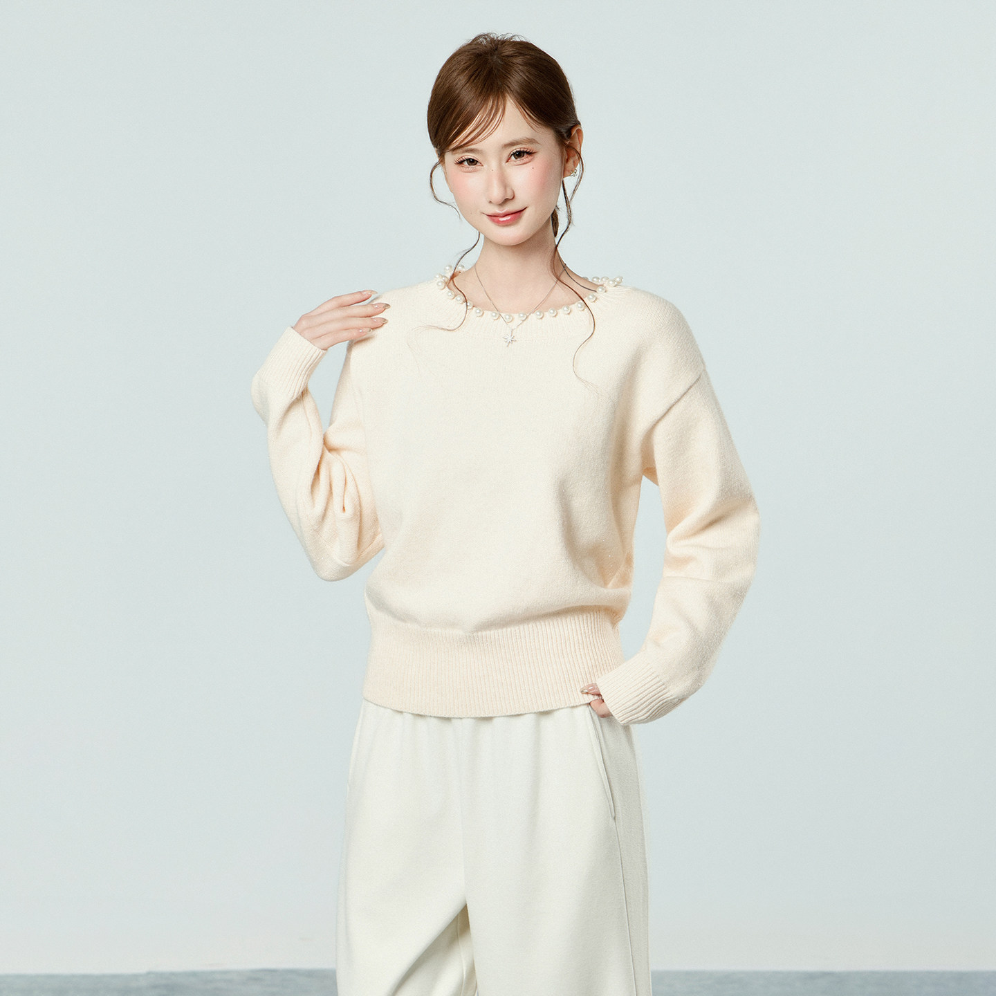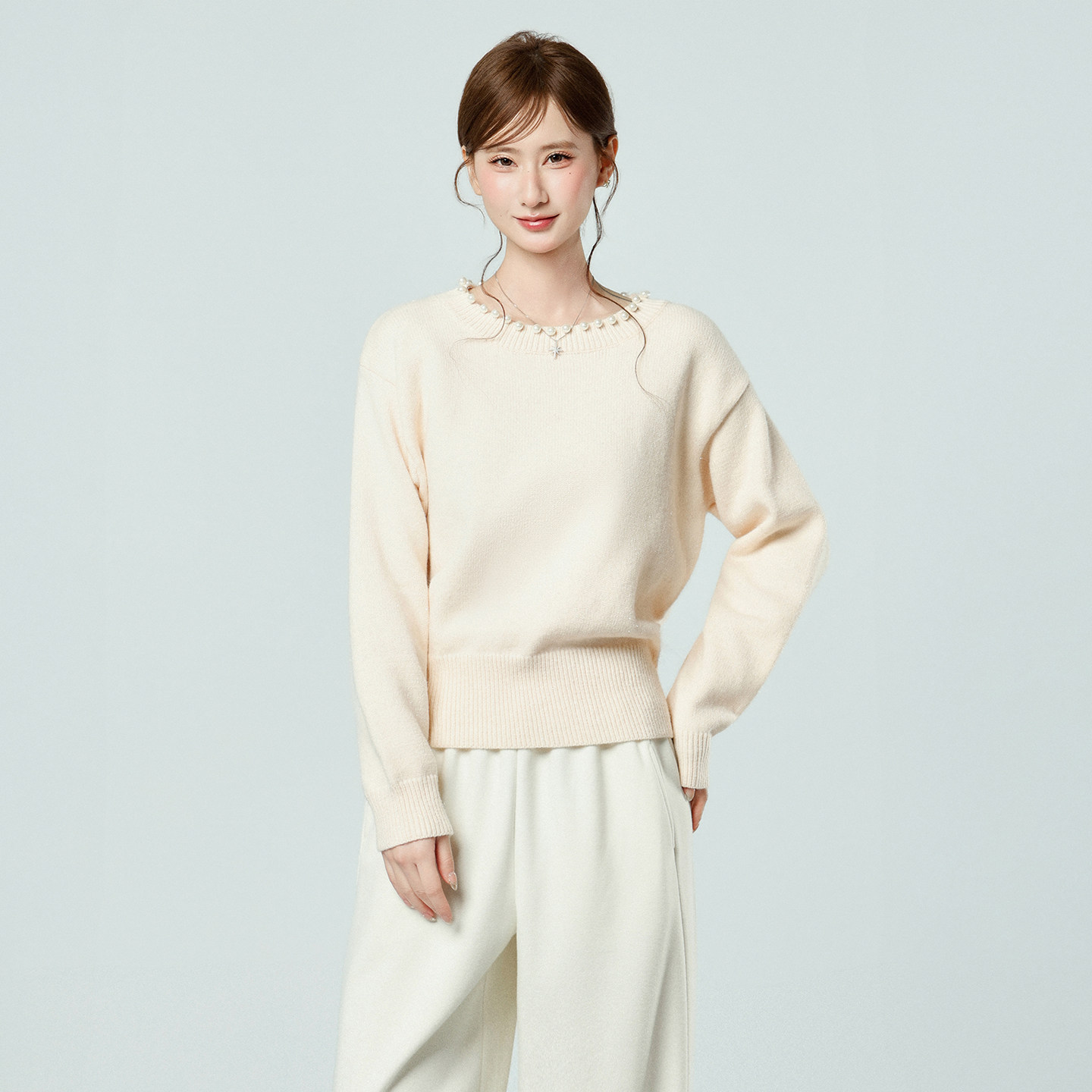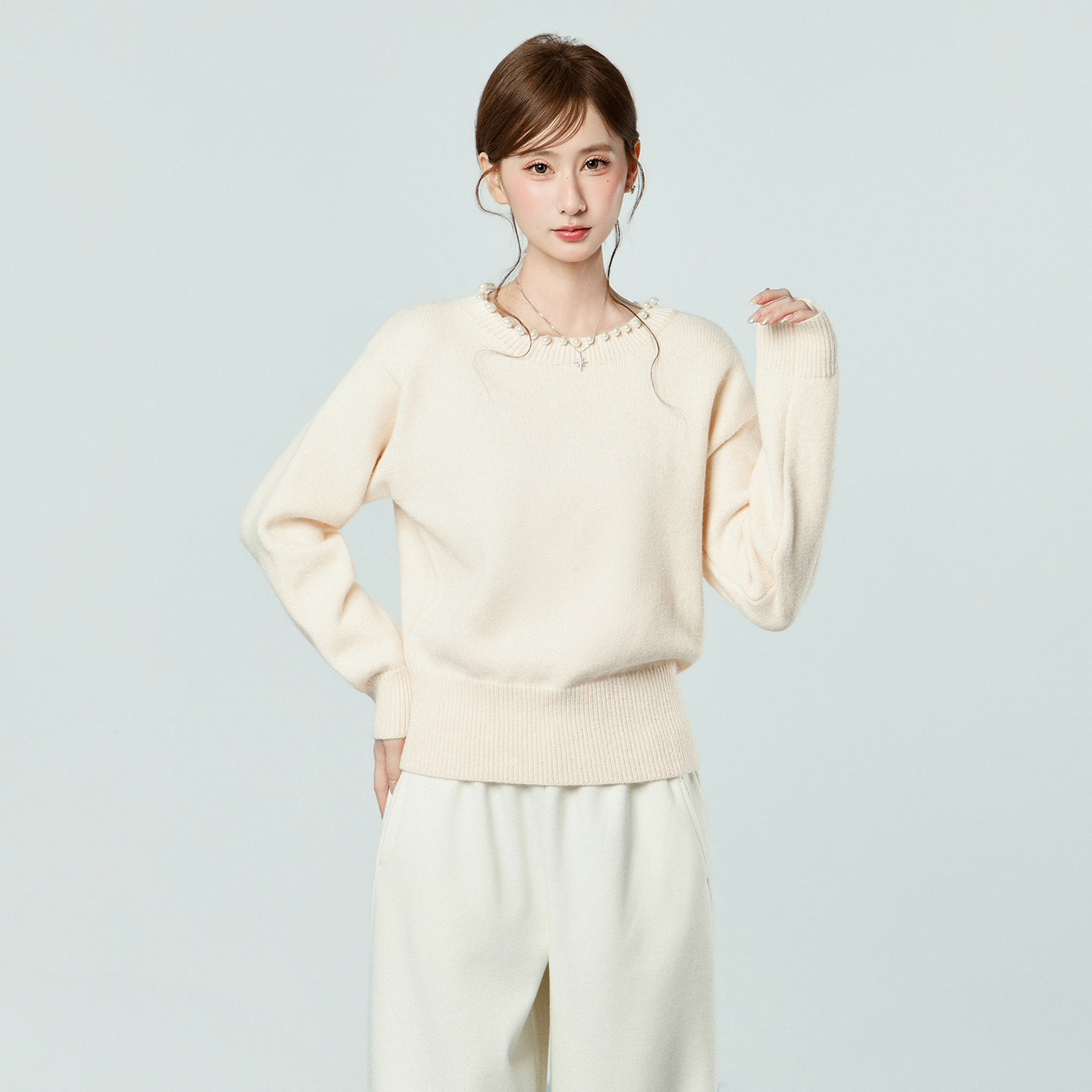 实拍实价温柔风珍珠领粉色针织衫女秋冬季软糯毛衣内搭千金感上衣