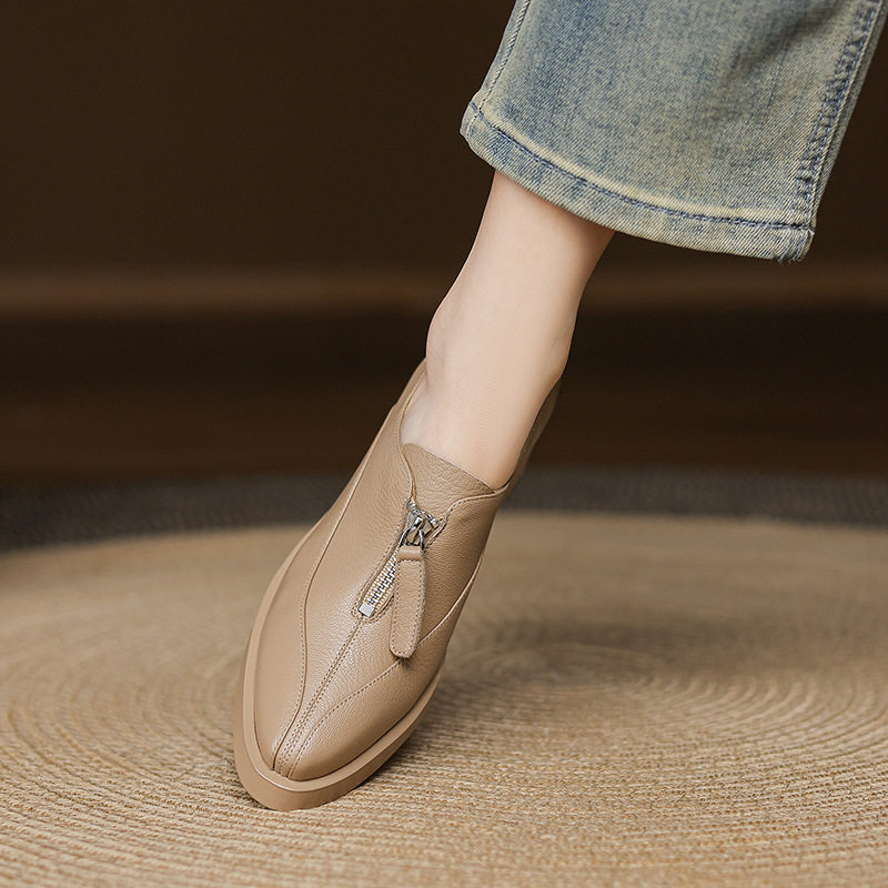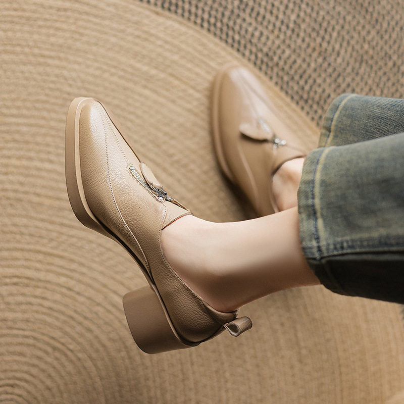 巨舒服英伦风厚底小皮鞋女真皮粗跟鞋2025新款早春季浅口中跟单鞋