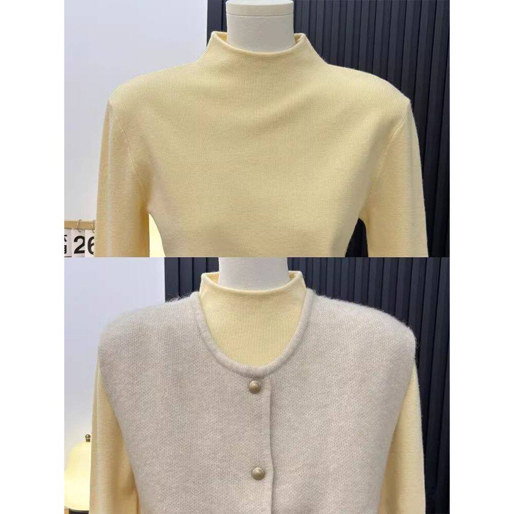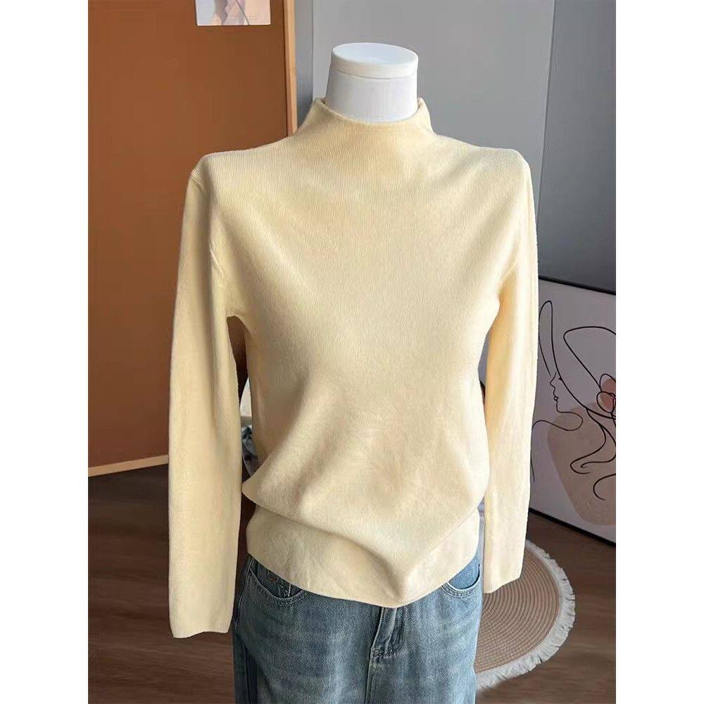 奶黄色半高领打底衫女今年流行配大衣春秋冬内搭毛衣针织上衣洋气