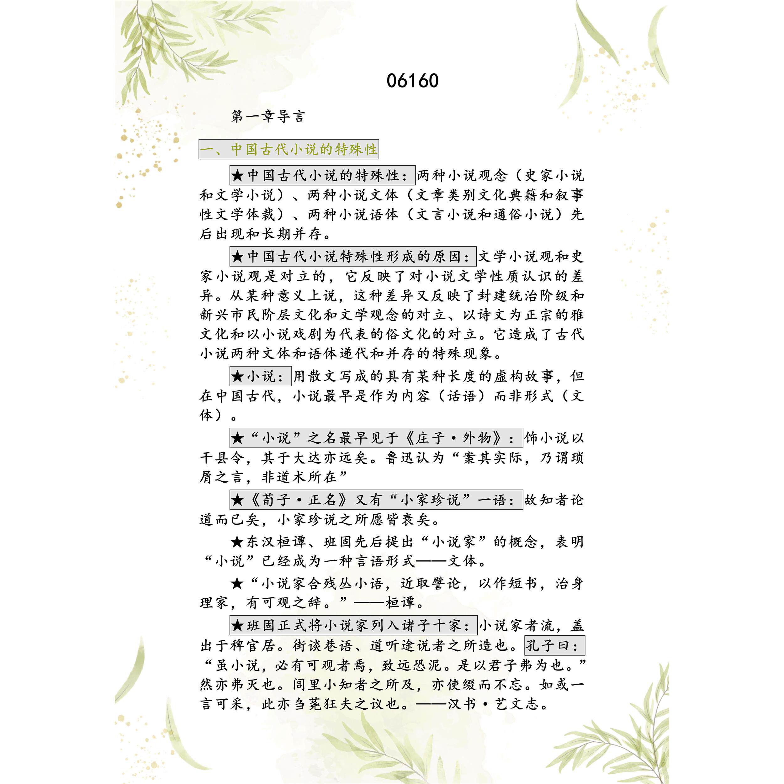 考点重点 06160中国古代小说研究 考纲讲解自考笔记 资料 自考复习过关思维导图 精讲视频网课 考前押题资料