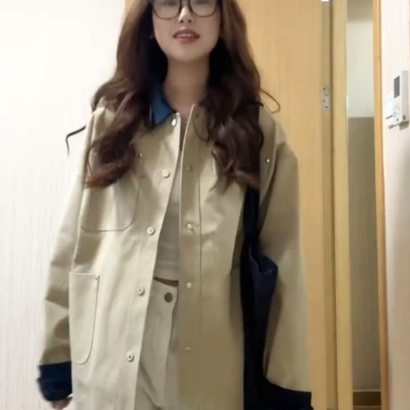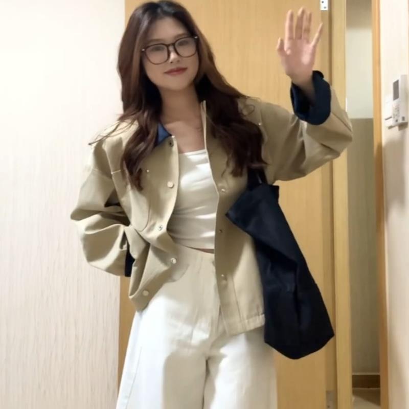卡其色短款风衣外套女秋季新款小个子韩里韩气的撞色翻领夹克上衣