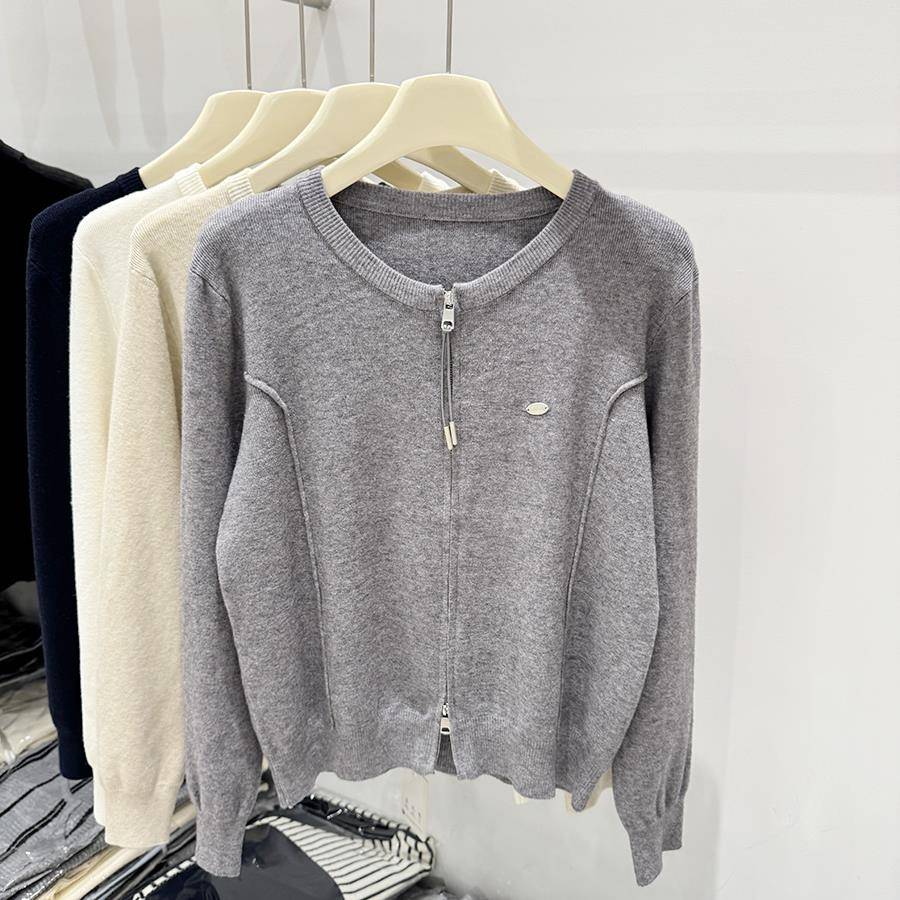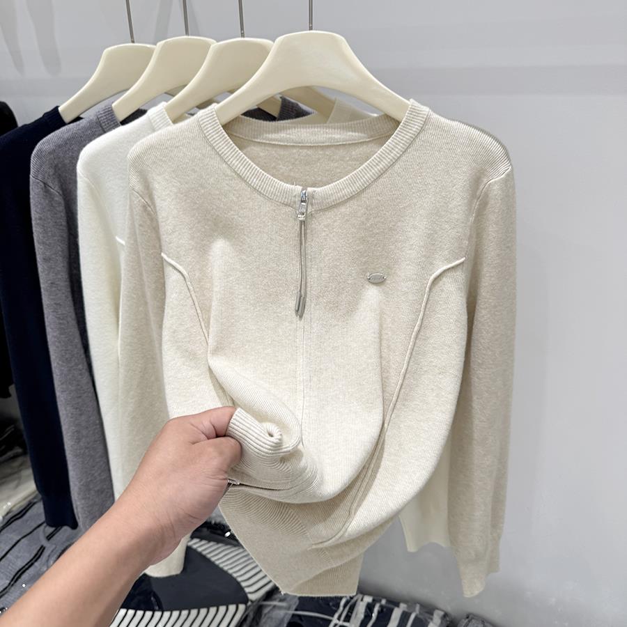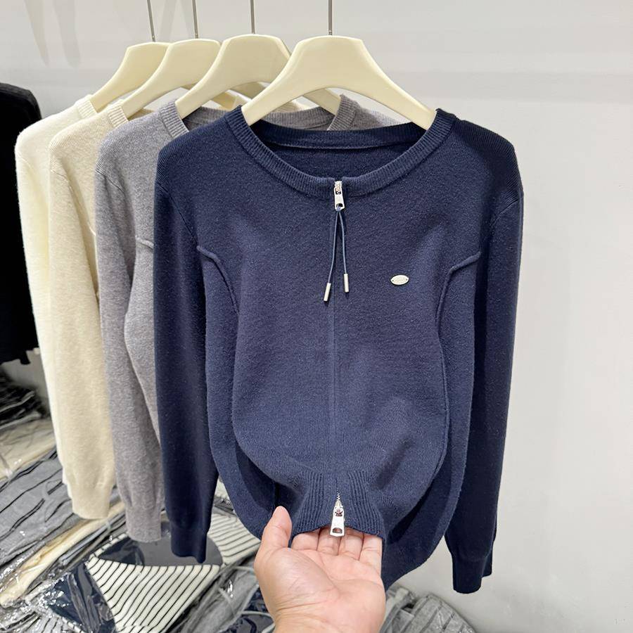 四季青2025早秋新款圆领双拉链柔软长袖针织开衫女时尚休闲上衣潮