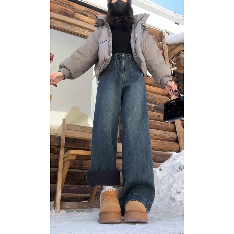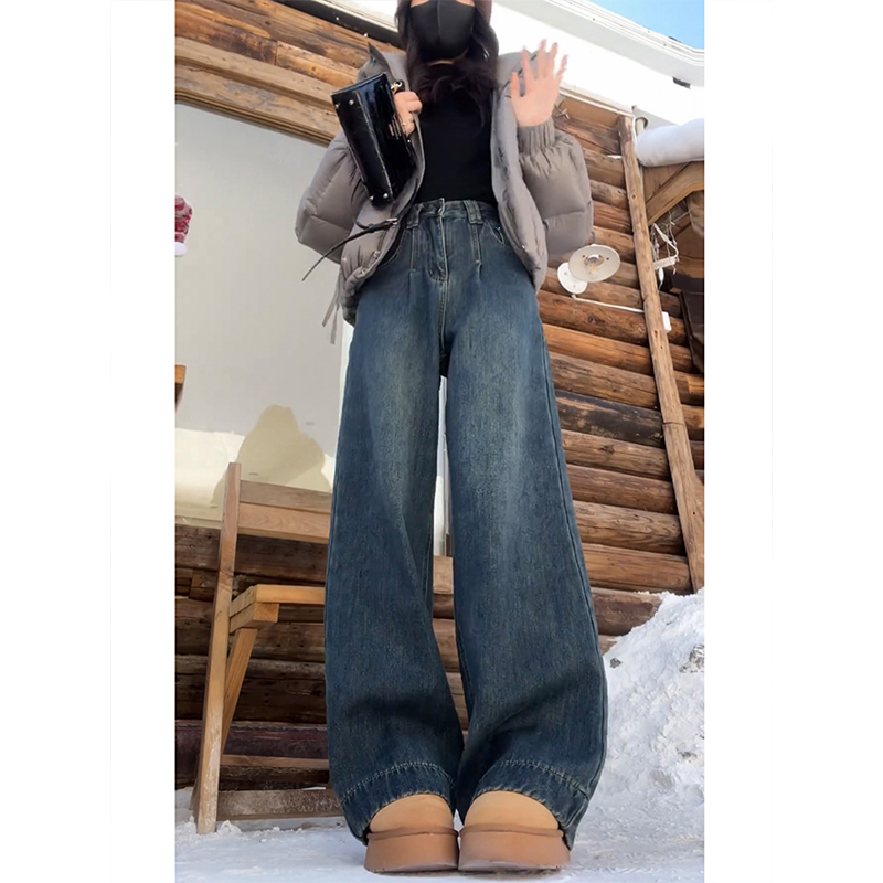 阔腿牛仔裤女2025秋季新款梨形身材大尺码高腰显瘦宽松直筒拖地长