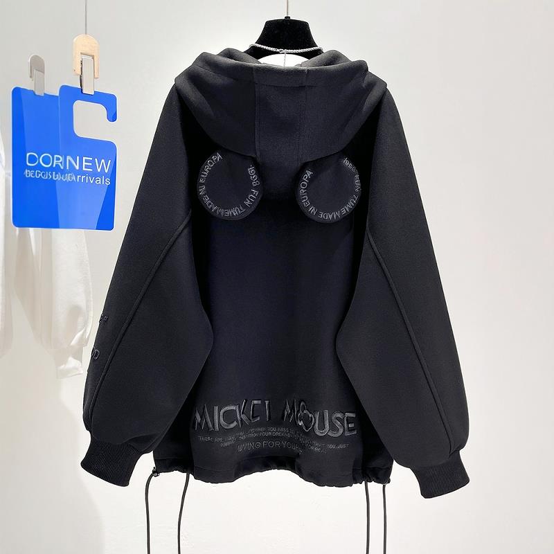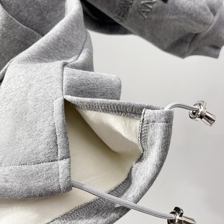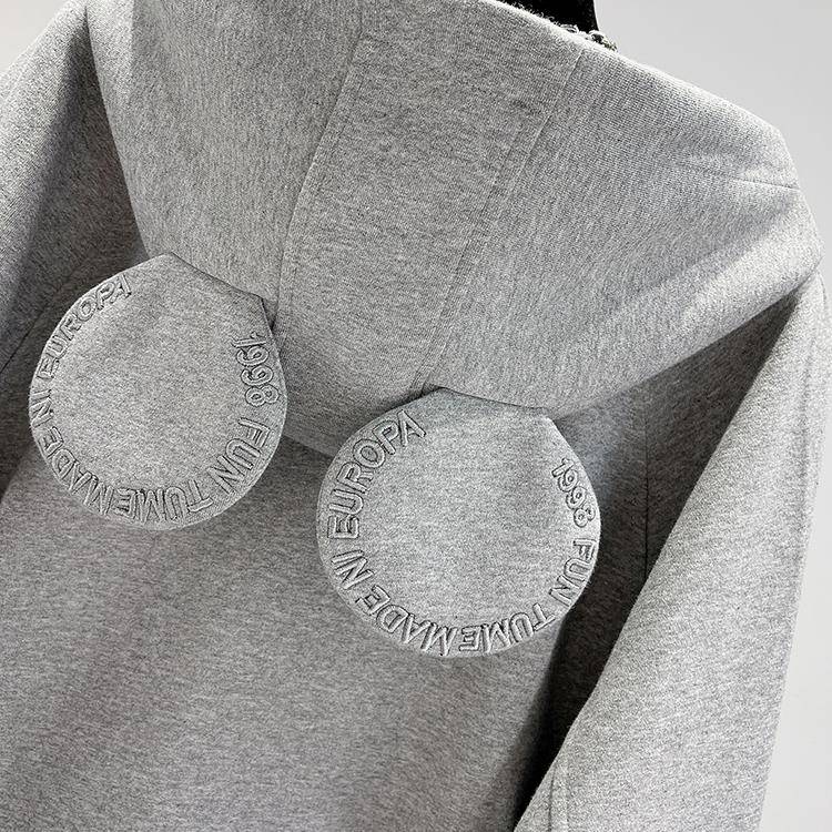 山东青岛即墨卫衣2025新款女春秋中长款加绒刺绣拉链连帽开衫外套