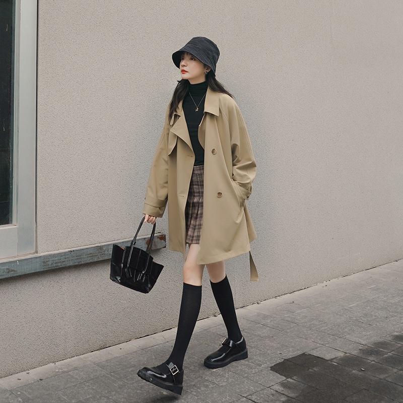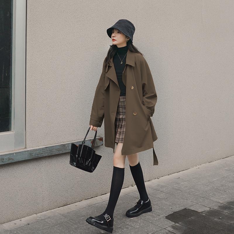 咖色风衣女外套女小个子秋装外套女中长款风衣女促销韩版风衣女