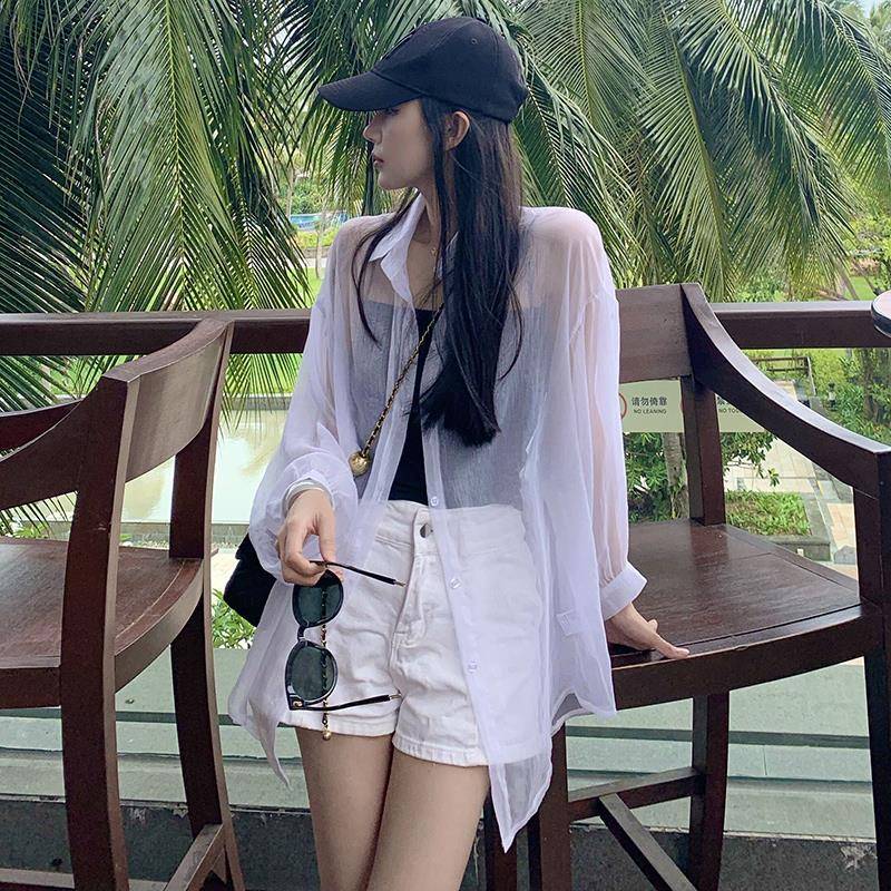 高级感灰色防晒衬衫女外套开衫夏季女款防晒衬衣天丝外搭防晒衣薄