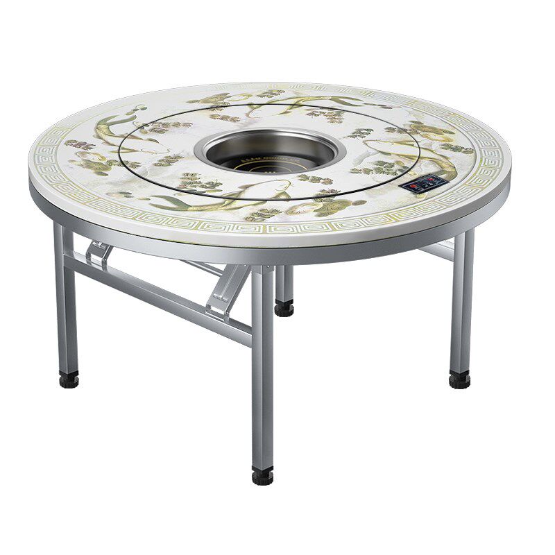 不锈钢转盘圆桌304折叠彩图员工食堂电磁炉火锅餐桌商用饭桌饭台