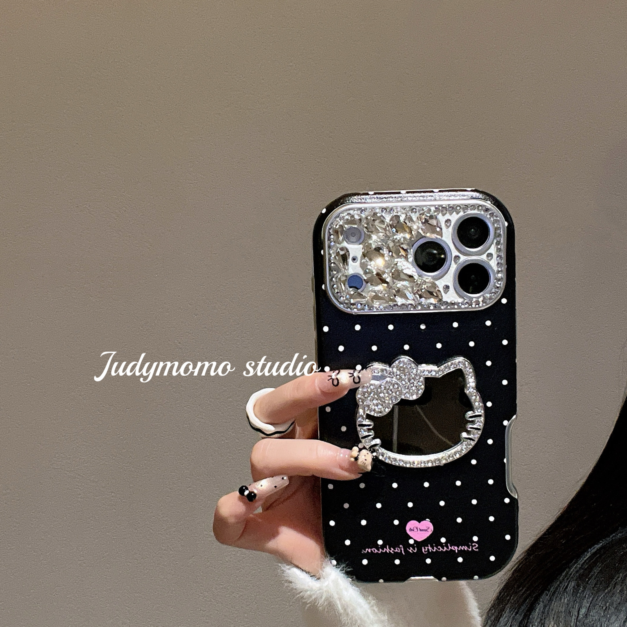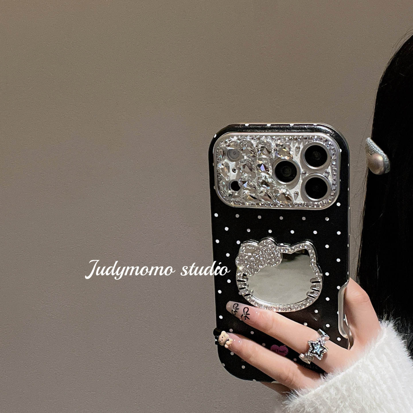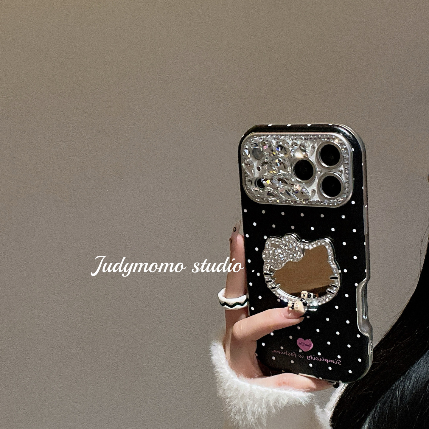 韩系ins黑白波点镜面手工贴钻适用17promax手机壳iPhone16苹果新款15/17全包大视窗防摔14少女软壳保护套
