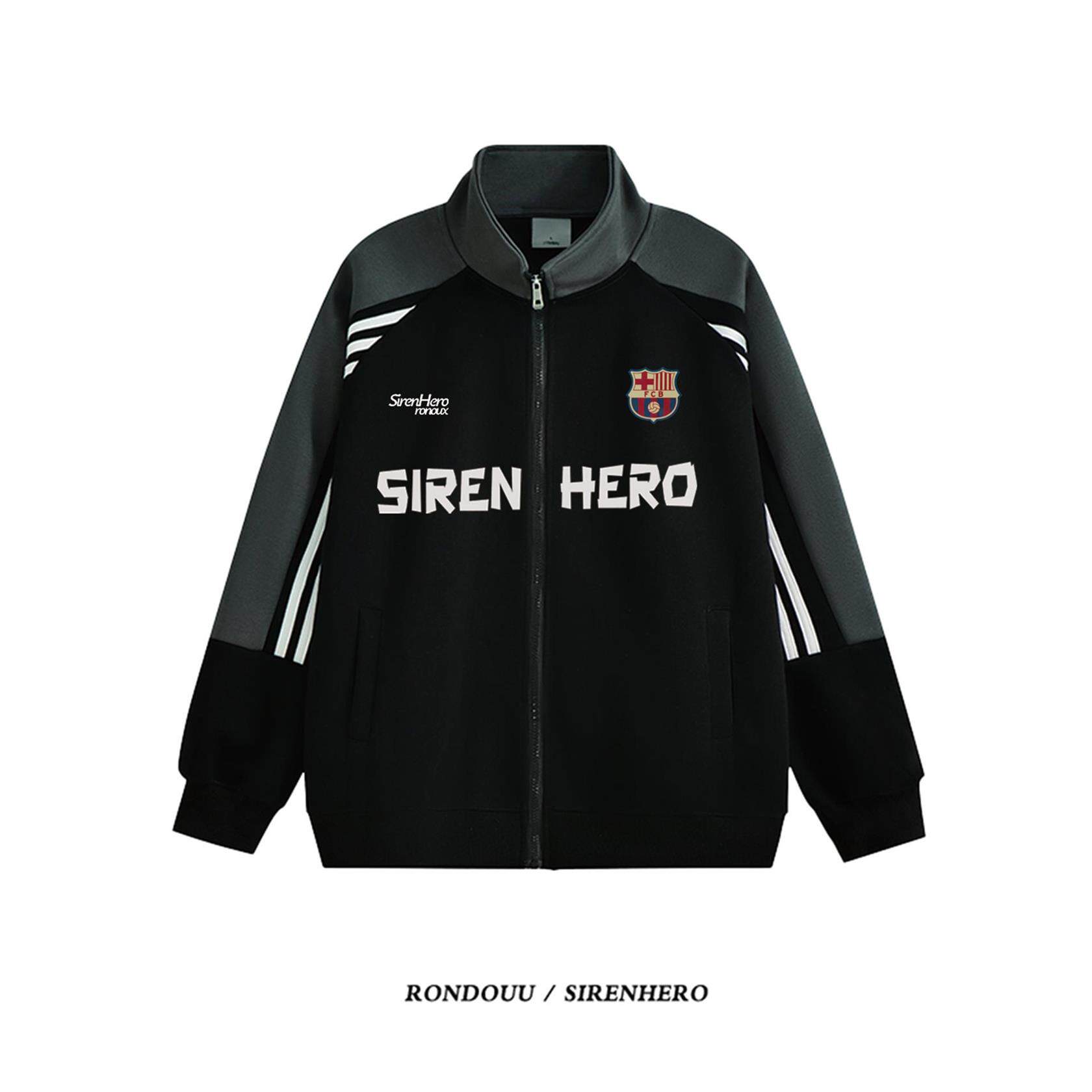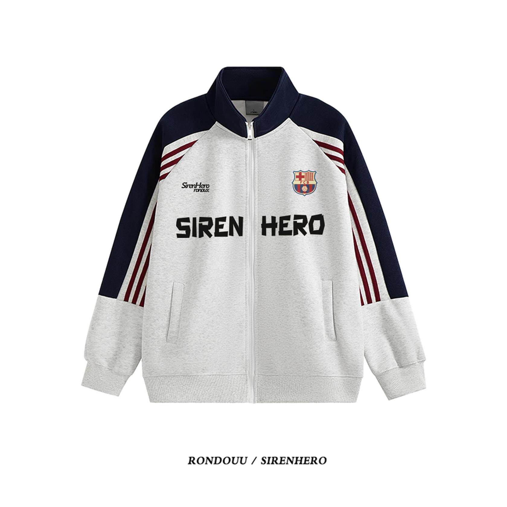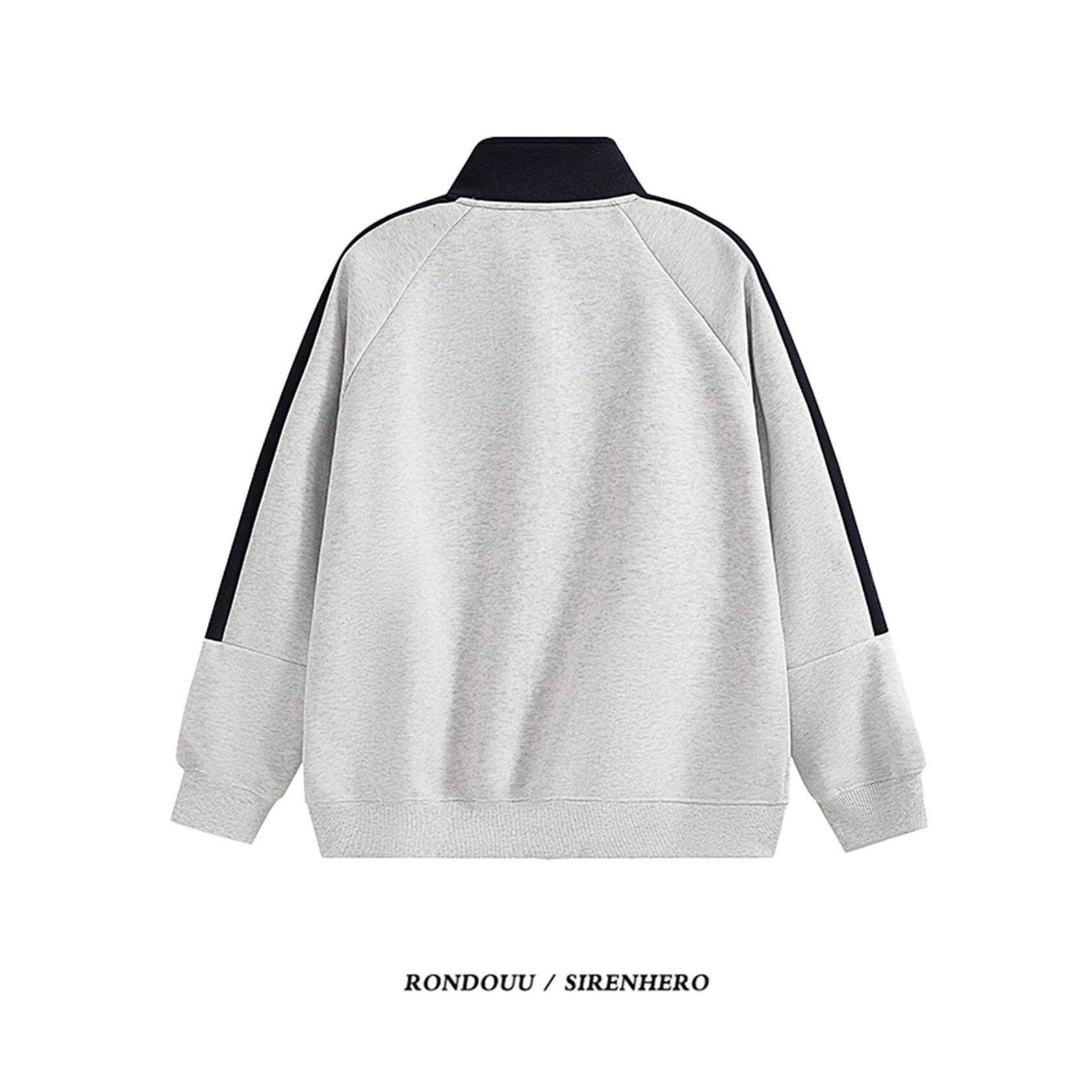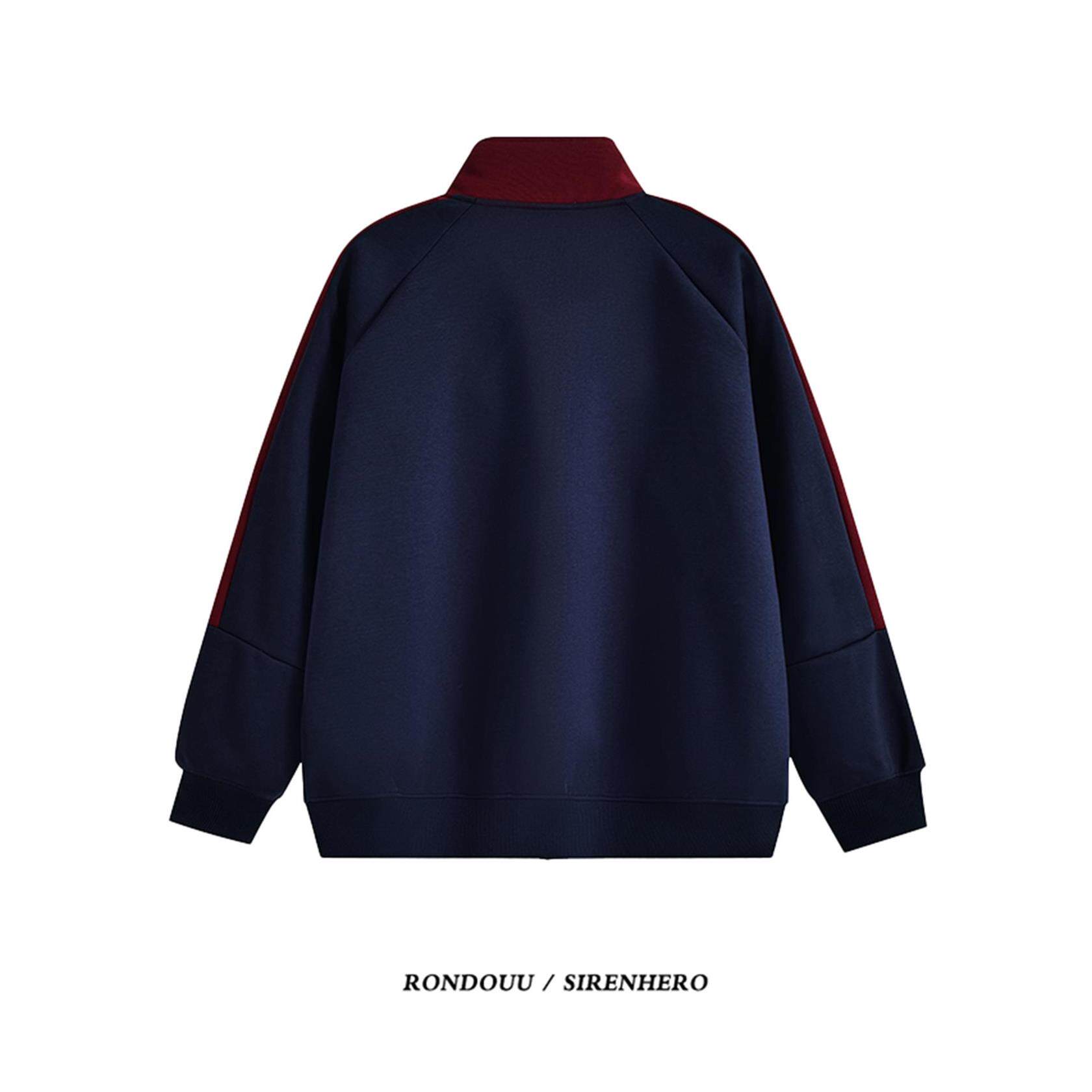 美式覆古撞色三条纹立领卫衣男女秋冬加绒加厚宽松棒球服开衫外套