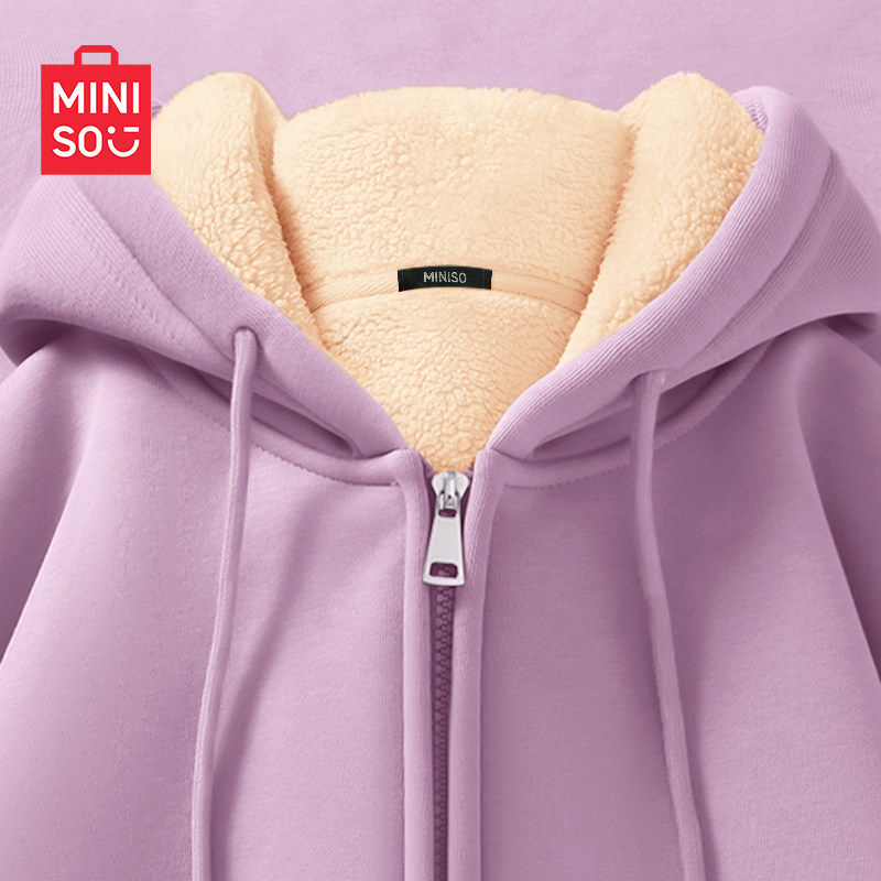 名创优品厚外套女2025新款秋冬灰色帽衫羊羔绒开衫加绒加厚卫衣D