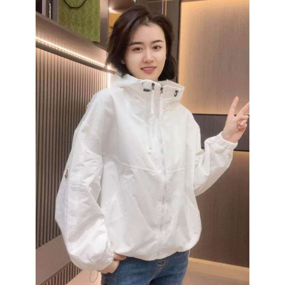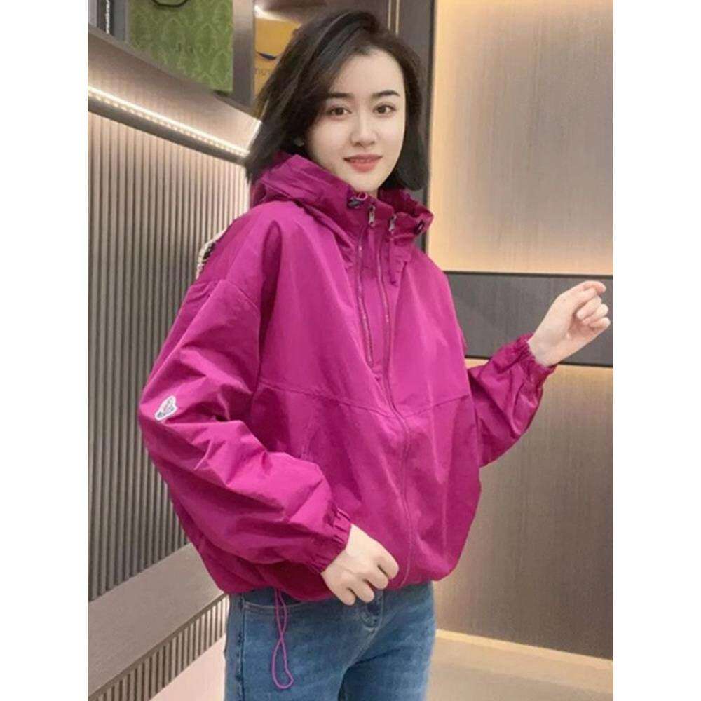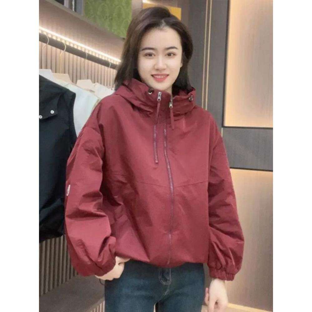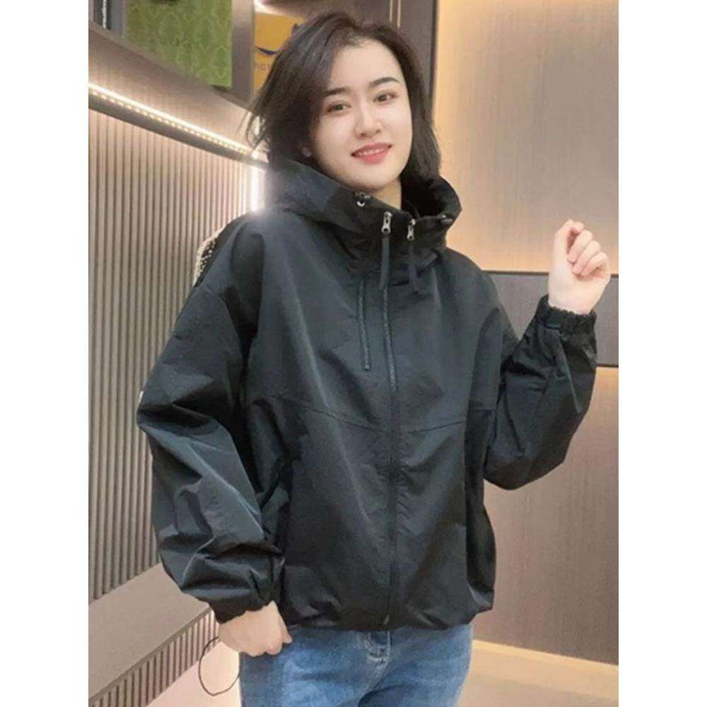 2025初秋新款连帽夹克外套女欧货大码防风户外运动宽松百搭冲锋衣
