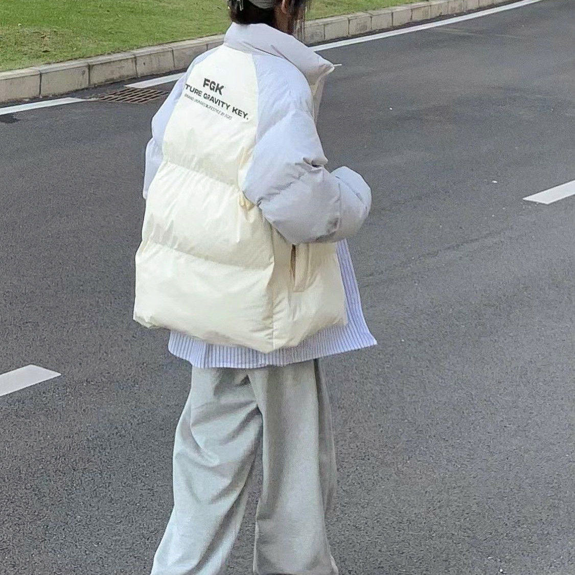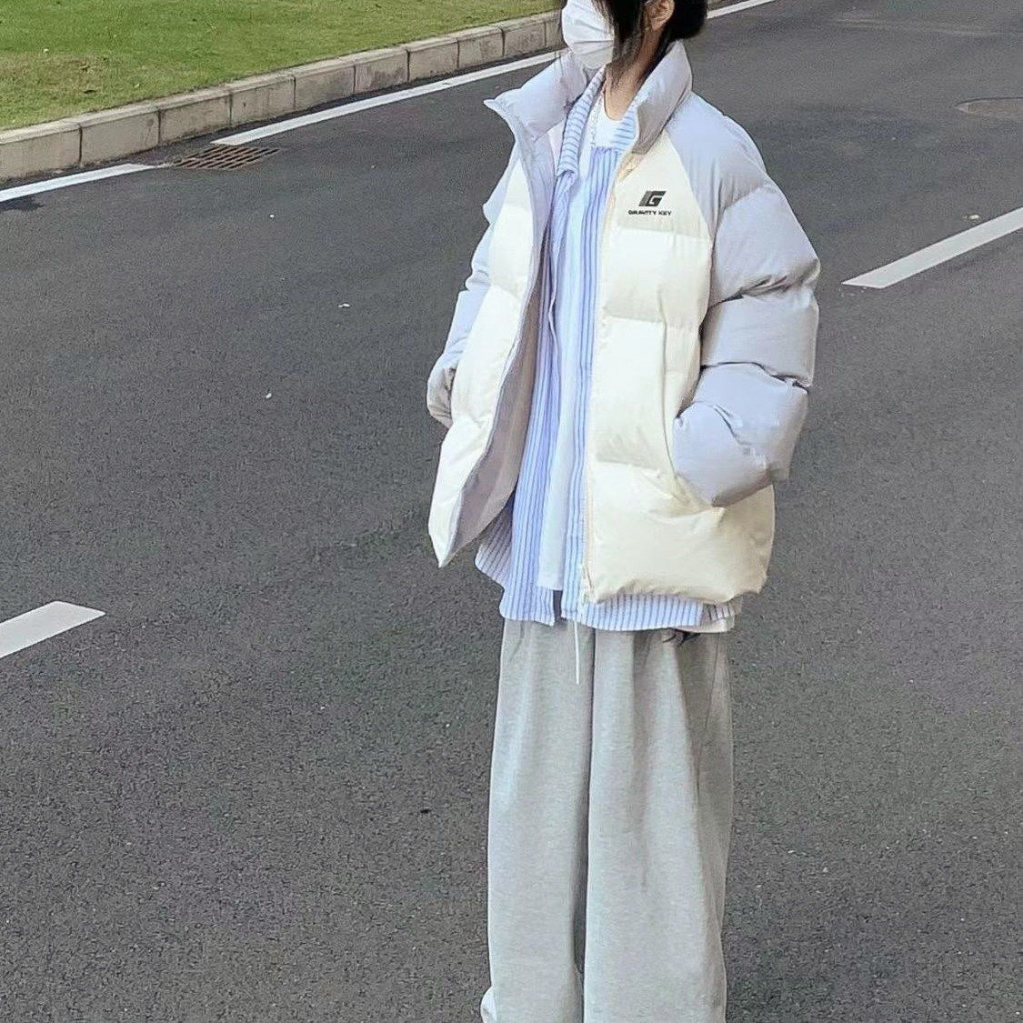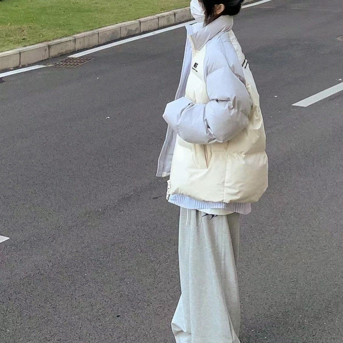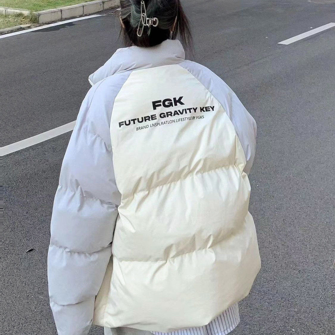 美式撞色羽绒服外套女冬日新款加厚面包服学院风设计感轻薄棉服