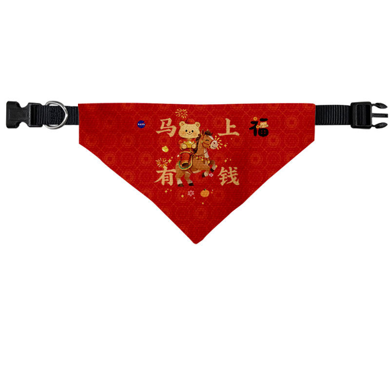 黄油小熊马年新年联名NASA马到福来宠物口水巾狗狗猫咪三角巾围巾