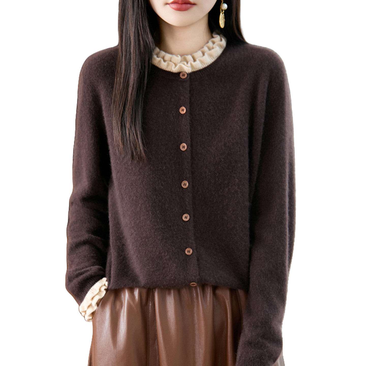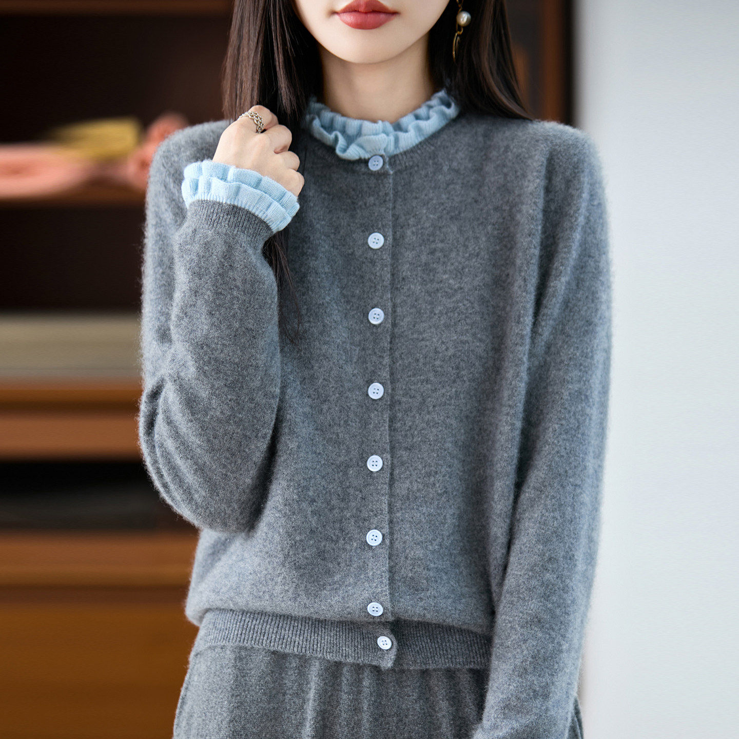 100纯羊毛衫微胖mm春秋特大码女士毛衣木耳边上衣内搭针织打底衫