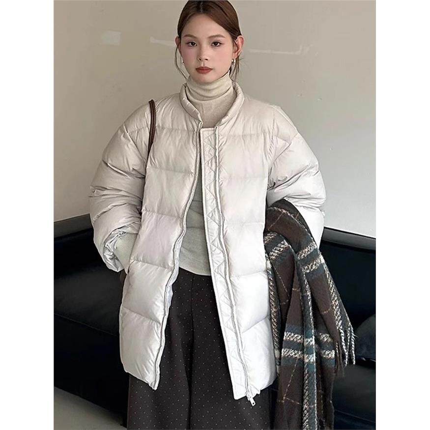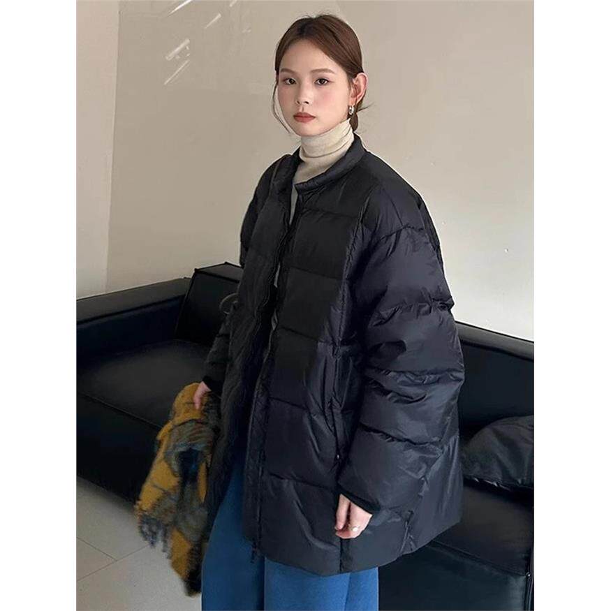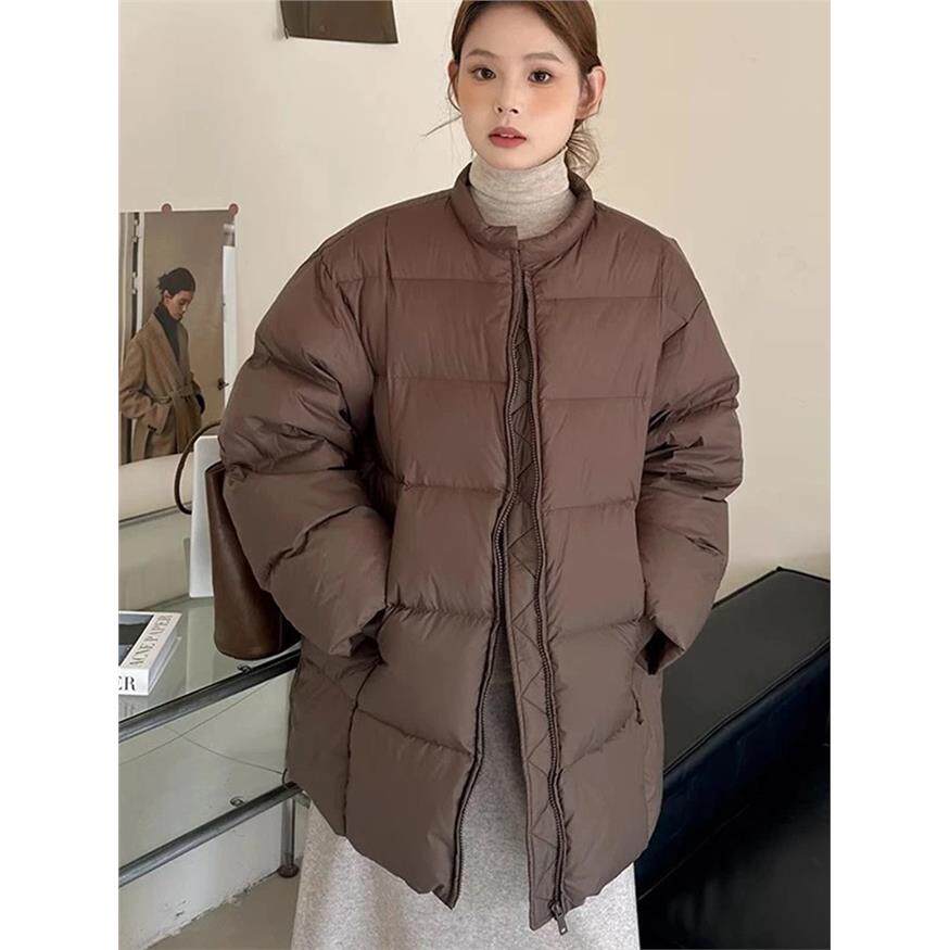 小个子时尚纯色拉炼保暖棉服女秋冬2025新款巨好看加厚中长款外套